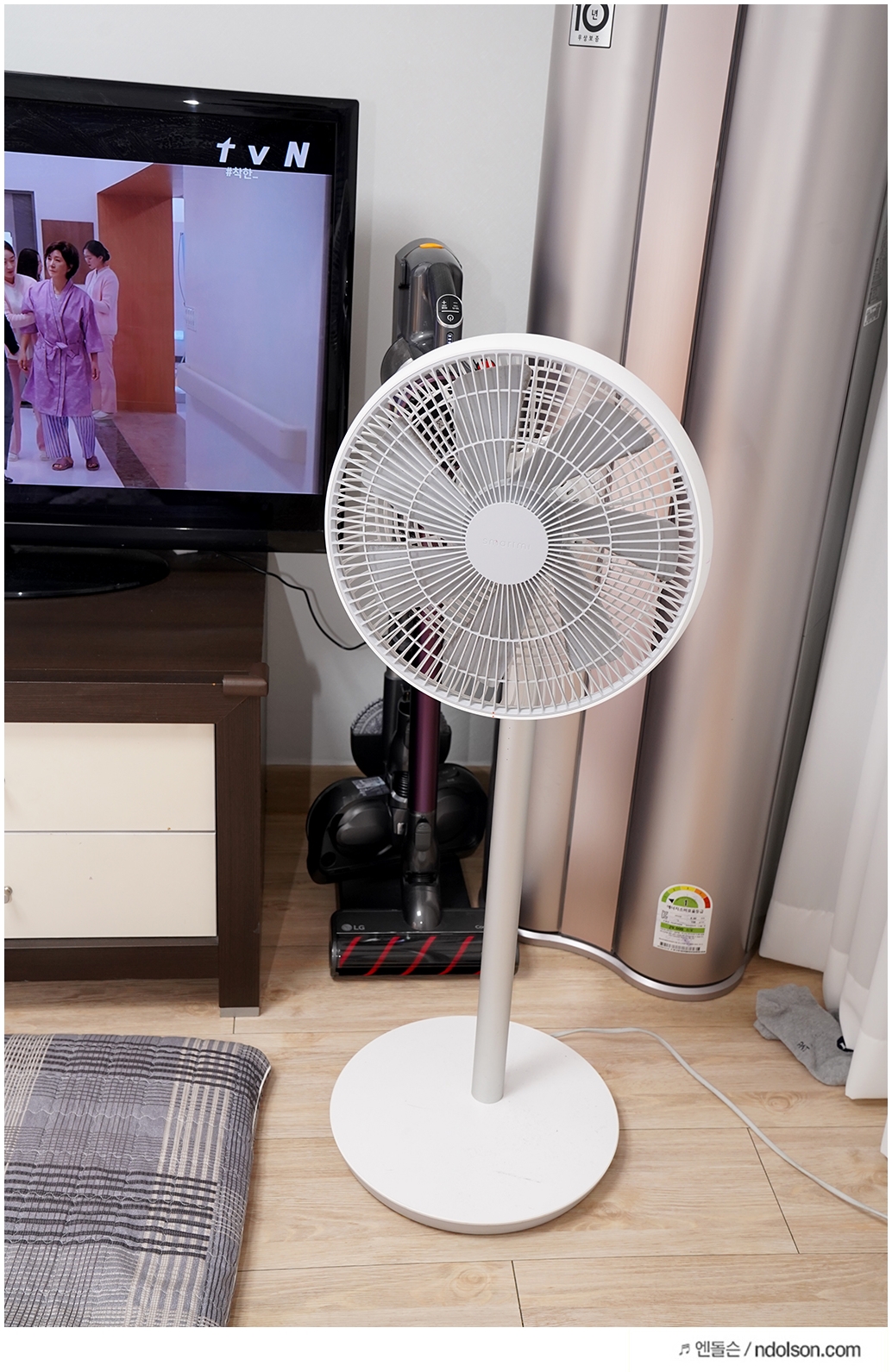에어컨도 있지만, 선풍기도 사용하게 됩니다. 특히 각방마다 선풍기를 쓰면 냉방 효율이 더 좋습니다. 에어서큘레이터처럼 찬바람을 쐬는 것이죠. 또 화장실 같은 공간에 선 없이 샤오미 선풍기를 어디든 놓을 수 있다는 점이 좋습니다.