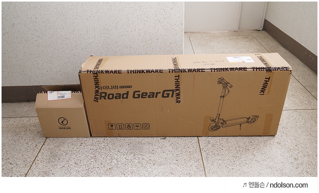 그럼 아이나비 스포츠 로드기어 GT를 택배로 받고 바로 개봉해본 후기입니다. 옆에 작은 박스는 아이나비 전용 킥보드 헬멧입니다.