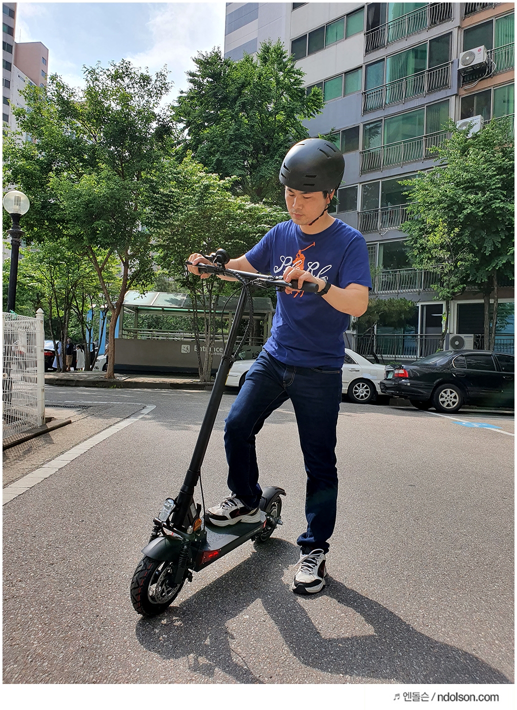 필자는 전동킥보드를 다양한 제품을 오래도록 타보았습니다. 그래서 10인치 이상되는 바퀴가 탑재된 전동킥보드를 선호합니다. 아이나비 스포츠 로드기어 GT 는 10인치 바퀴에 두께가 3인치인 광폭 타이어를 탑재하였습니다. 바닥의 지면이 울퉁 불퉁해도 불안하지 않게 주행할 수 있었습니다.