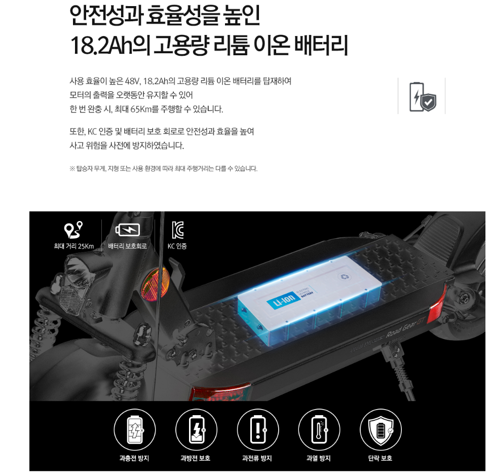 또 싸구려 전동킥보드의 경우, 과충전으로 인해 폭발 위험에 대한 기사를 보았는데요. 아이나비 스포츠 로드기어GT는 과충전 방지 기능과 배터리 보호회로가 탑재되어 있습니다. 또 KC인증을 받은 제품으로 안전성이 보장된 제품입니다.