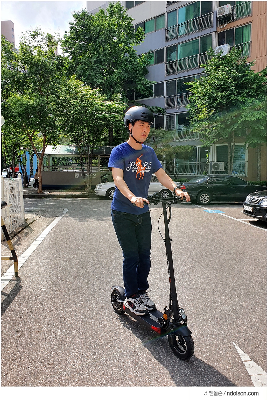 주행감이 끝내줍니다. 오르막도 500W 모터 출력이라 거뜬하게 올라갑니다. 여러 전동킥보드를 타보았지만, 아이나비 스포츠 로드기어 GT의 장점은 전, 후 4개의 강력한 서스펜션이 탑재되어 있어 지면의 충격이 완화된다는 것입니다.