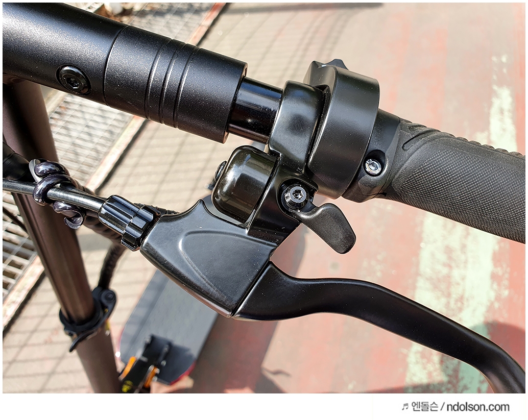 또 별도로 구매하지 않아도 경음기 장착이 되어 있습니다. 소리는 자전거 벨소리가 나기 때문에 거부감도 없었습니다. 잡아당기고 놓으면 2번 소리가 납니다.