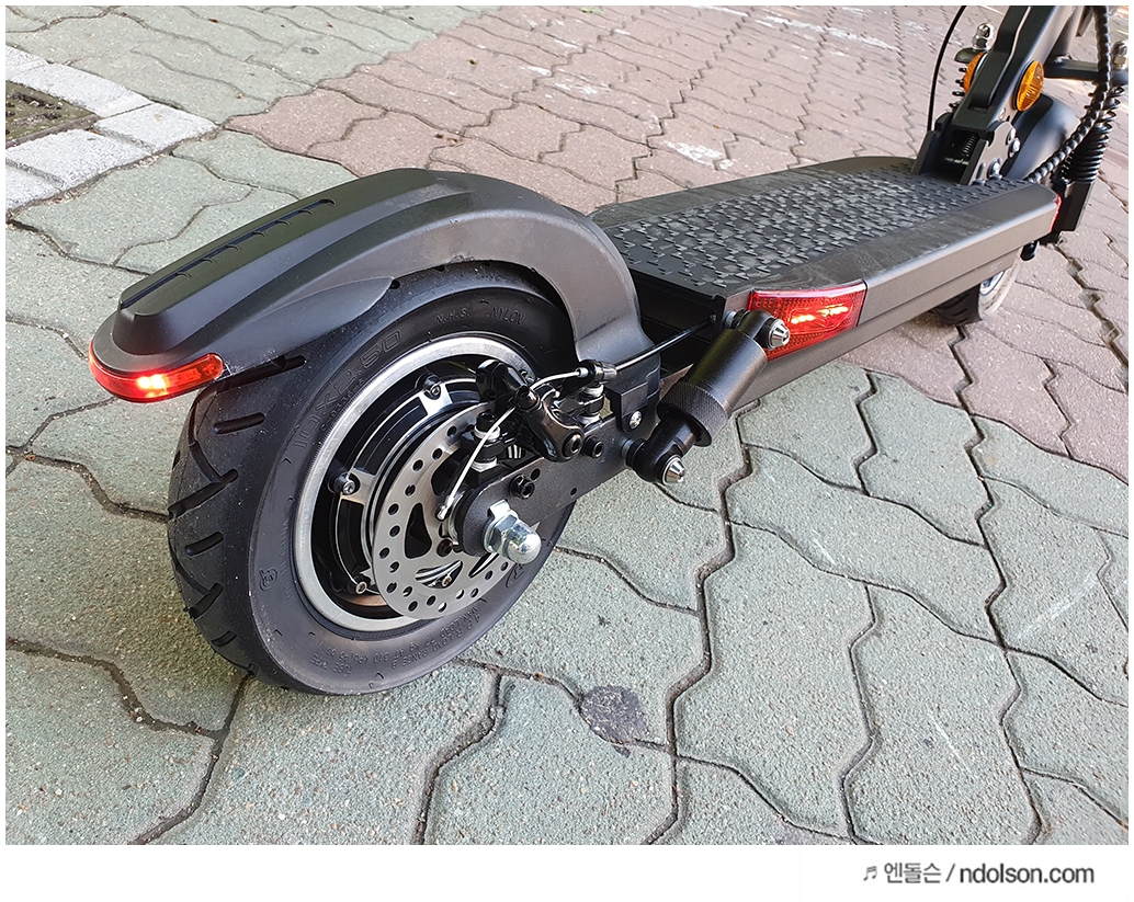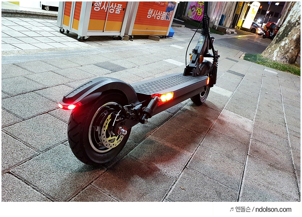 전면의 서스펜스가 장난 아닙니다. 지면의 충격을 완화하기 때문에 전동킥보드를 구매할 때 서스펜스를 지원하는 모델이 좋습니다.
