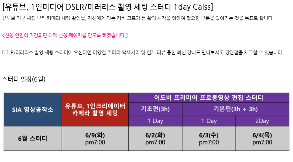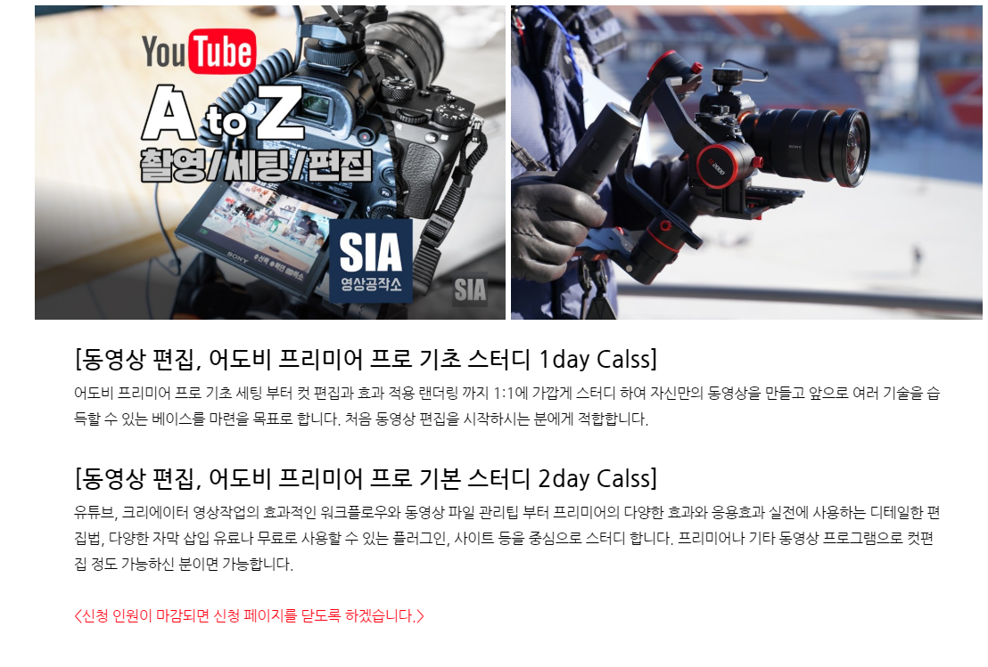 동영상 촬영 편집 강의 접수중, 유튜버 크리에이터를 위한 프리미어 프로 강의