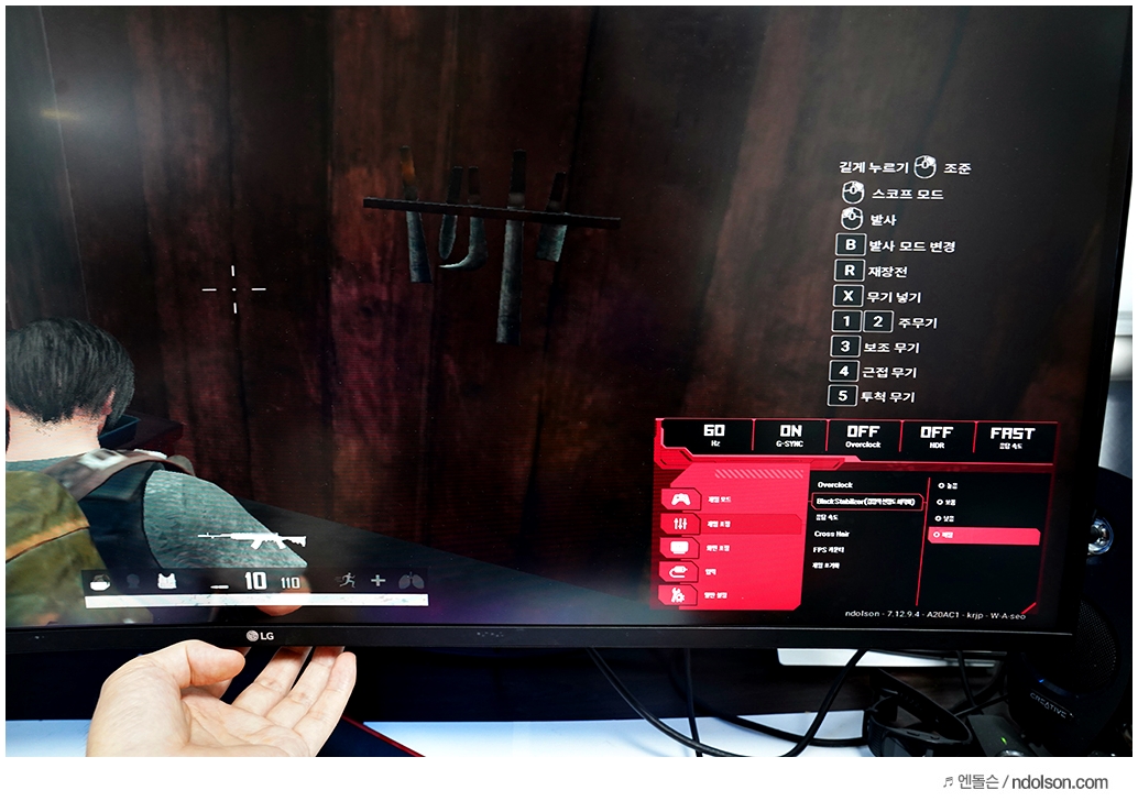 하지만 LG 울트라기어 게이밍모니터 38GL950G는 IPS 패널의 한계를 극복하고 세계 최초 나노 IPS 1ms 의 반응 속도를 보여줍니다. 1~5ms 반응속도를 보여주고 상황에 맞게 조절도 가능합니다. 배틀그라운드 게임 한 판을 해보고 대박 반응감에 놀랬습니다.