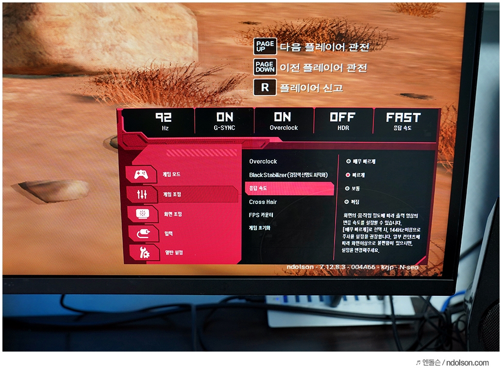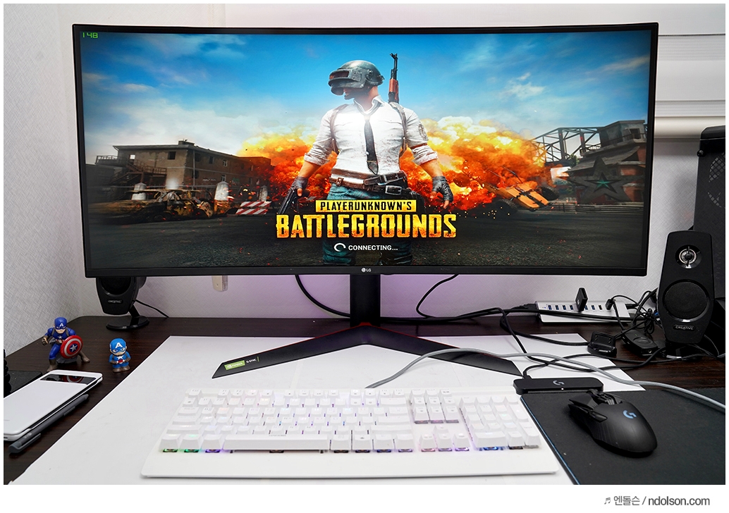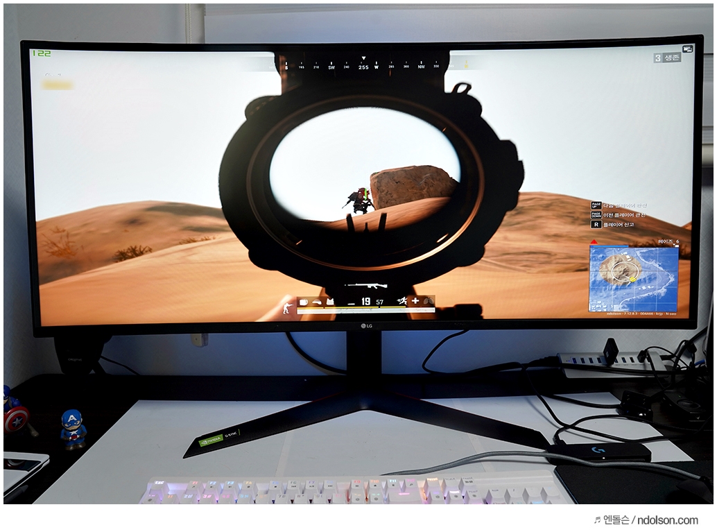 배틀그라운드처럼 빠른 화면 전환을 요구하는 FPS 게임을 즐기기 위해서는 꼭 필요한 G-Sync(G-싱크)와 144Hz 이상(최대 175Hz)을 지원하는 고주사율 모니터를 사용하는 게 속 편합니다. 주사율은 프레임 갯수인데, 화면을 빠르게 돌려가면서 주변을 살피는 게임이기 때문에 모니터 반응감이 떨어지면 게임 할 맛이 나지 않죠.