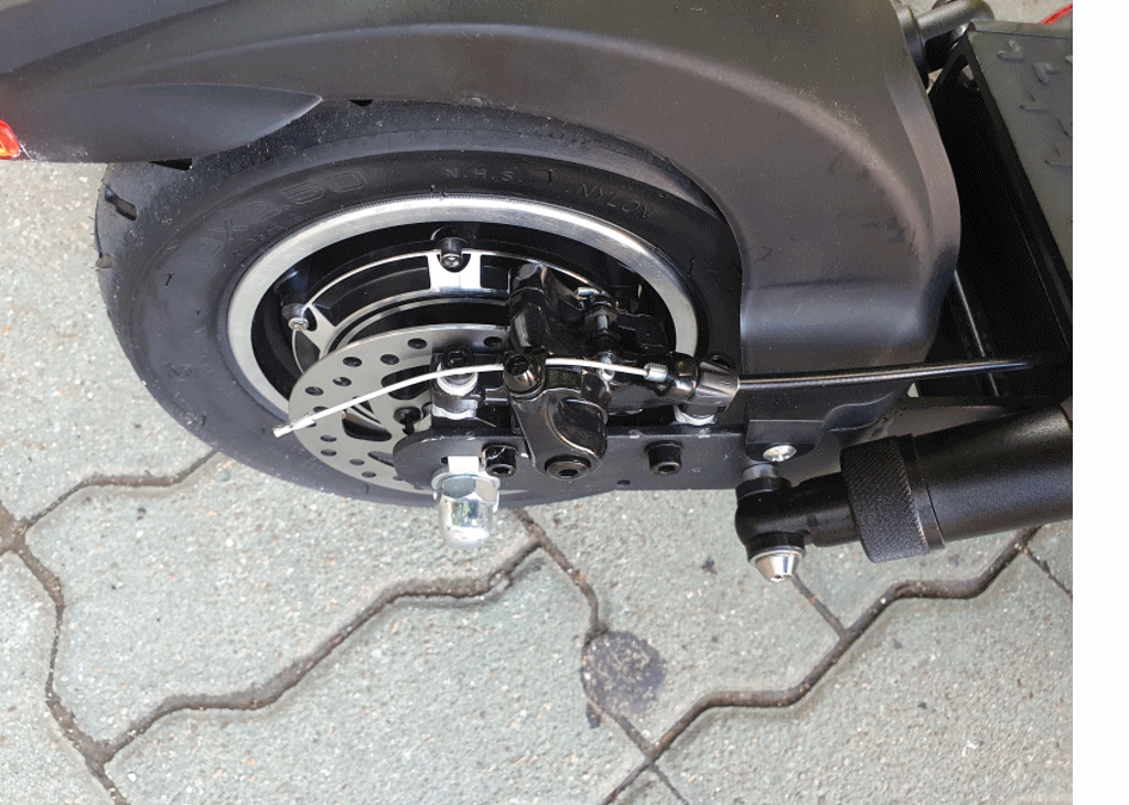 후면에도 듀얼 서스펜션가 탑재되어 있습니다. 전면, 후면 모두 서스펜션가 탑재되어 있어 10인치 튜브 타이어가 주행시 발생하는 충격을 완화 시켜 줍니다.