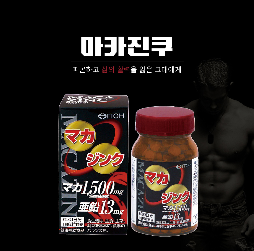 [21,150원](▼26%)★남성을 위한 특별한 상품★ 마카진쿠 MACAZINC 30일분 180정 / 마카1500mg / 아연13mg