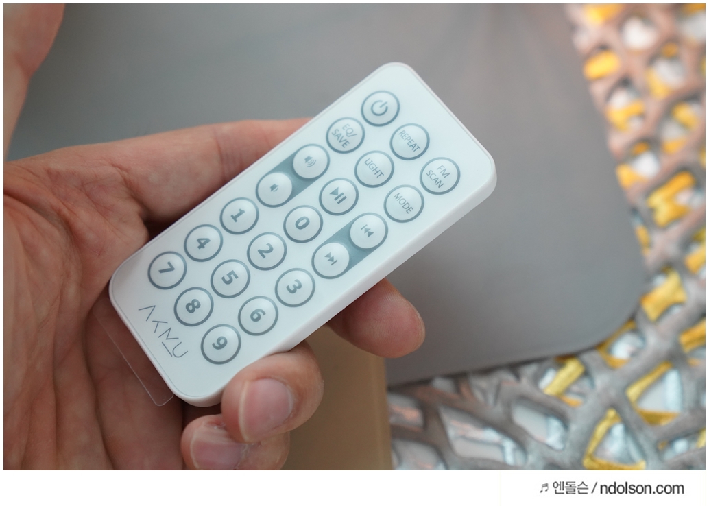 리모컨을 통해 멀리서도 자유로운 조정도 가능합니다. 반복재생 및 FM 라디오 등의 채널 변경을 할 때는 리모컨이 상당히 편리하네요.