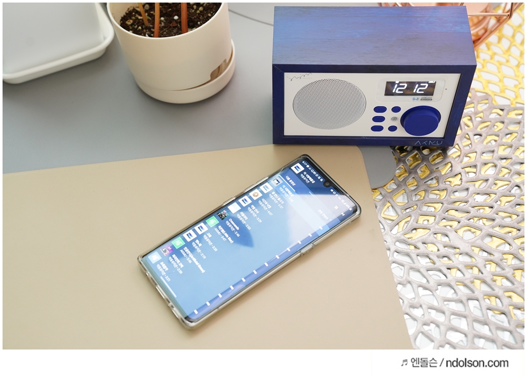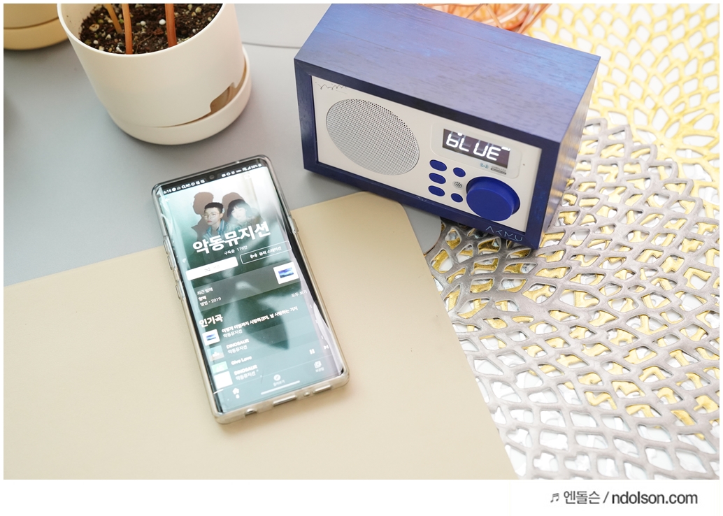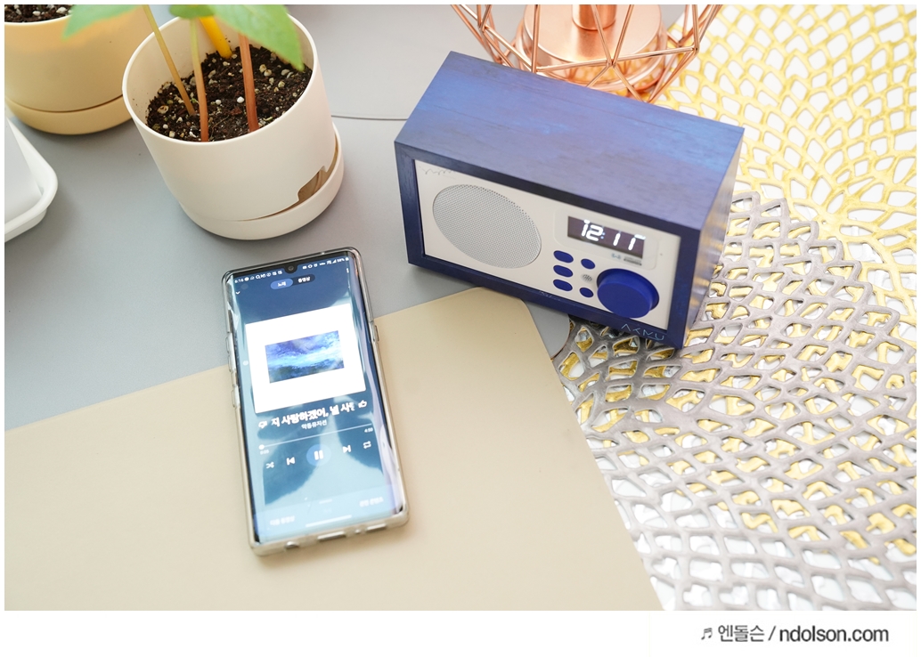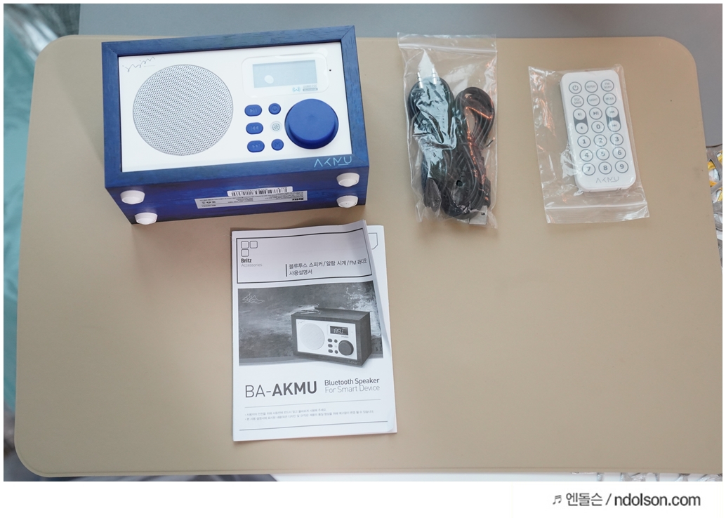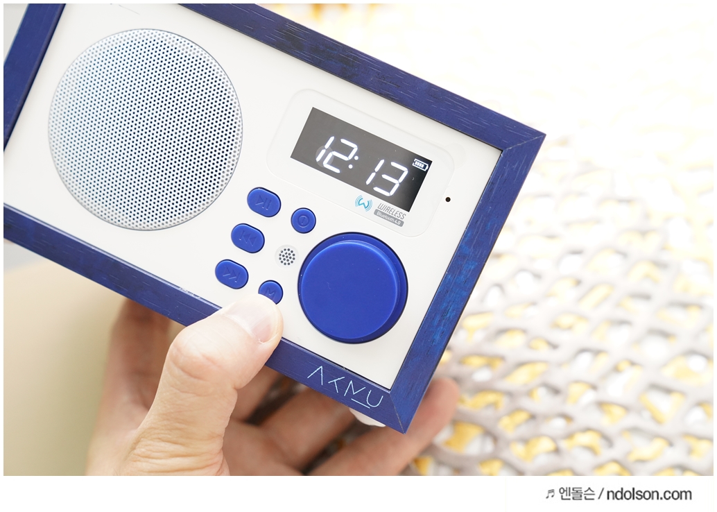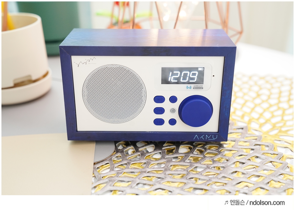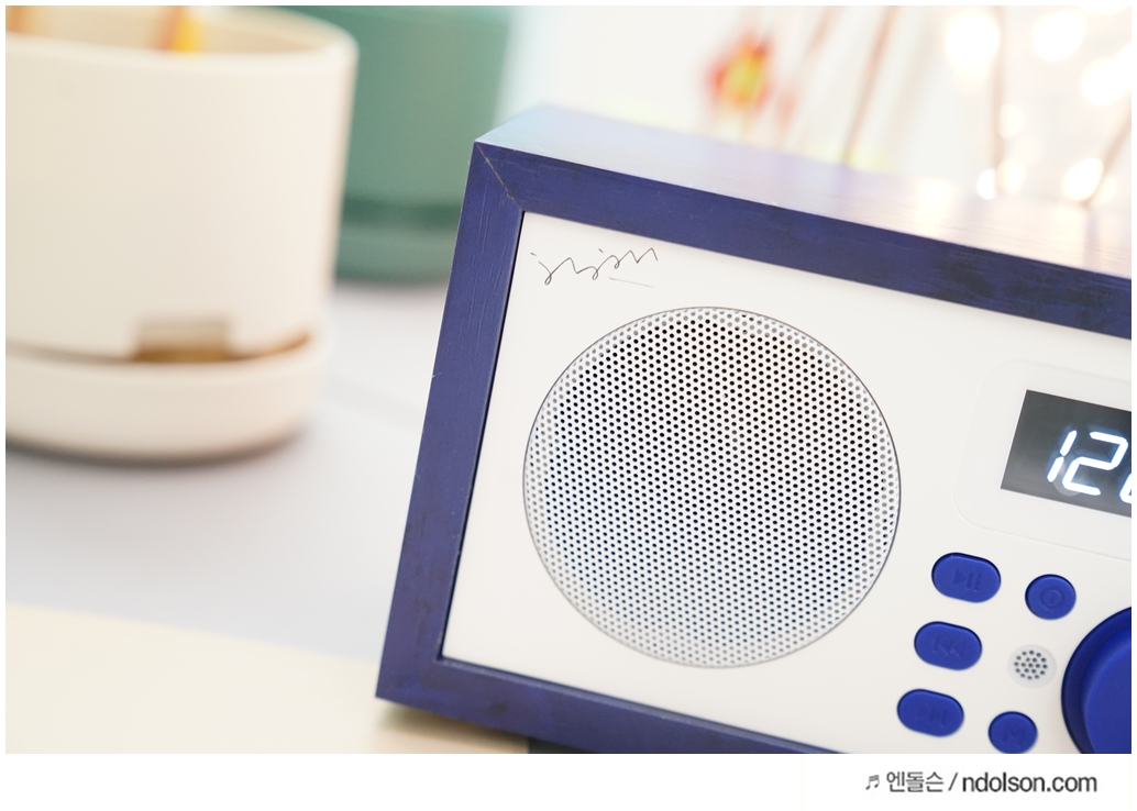 딥블루의 시원한 느낌에 나뭇결 모양의 브리츠 BA-AKMU 스피커가 자리에 놓으니 언제든 노래 듣고, 라디오 듣고, 시계를 볼 수 있어서 좋네요. 인테리어용 스피커를 고민하신다면 좋은 제품입니다.