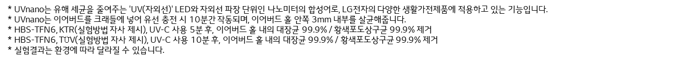 뿐만 아니라 요즘 같이 바이러스 이슈로 개인 청결에 신경 써야 하는 제품에 LG 톤 프리 무선 이어폰에만 있는 UVnano 살균 기능을 더해 항상 깨끗한 이어폰 상태를 유지하고 있습니다.