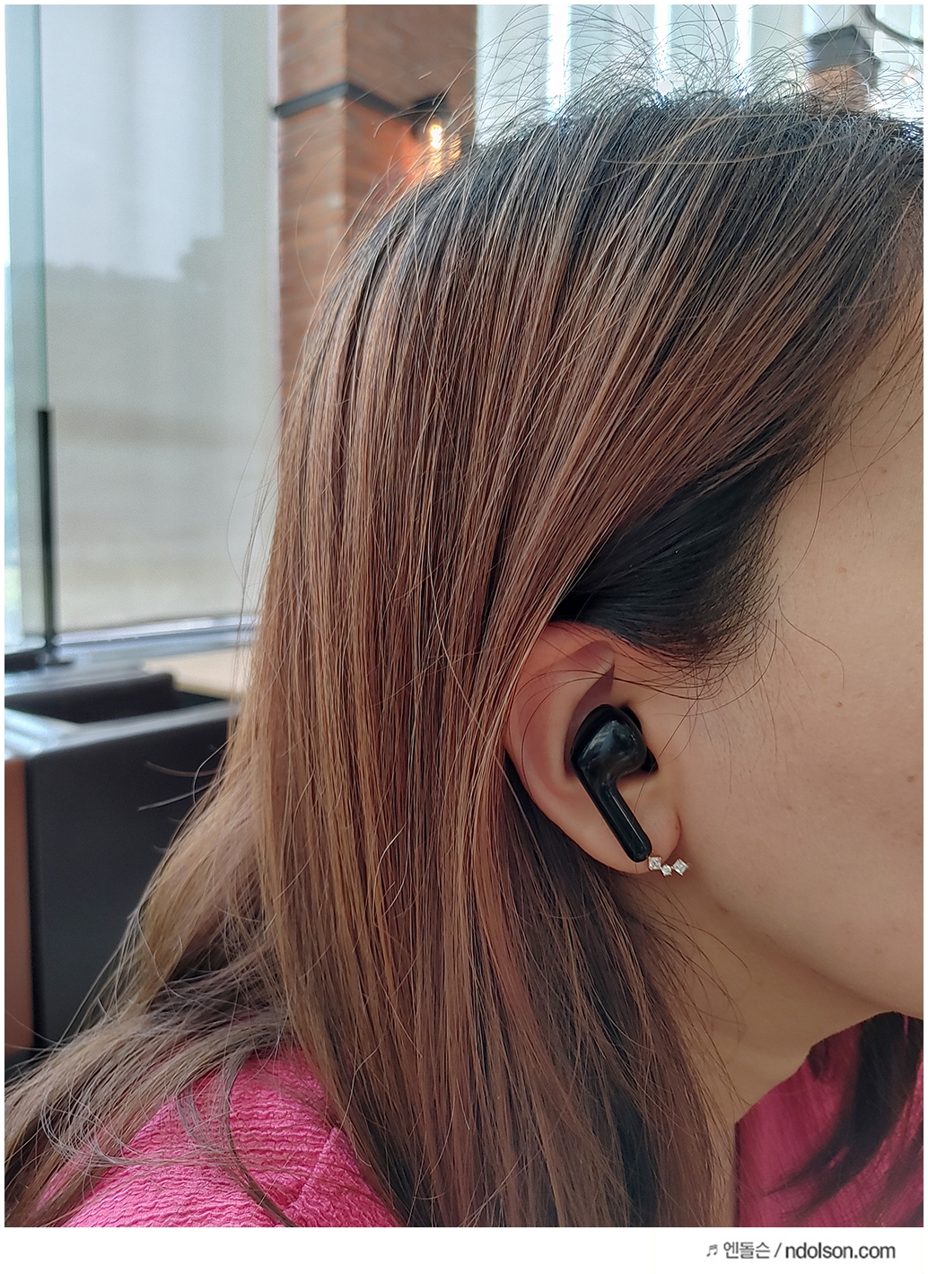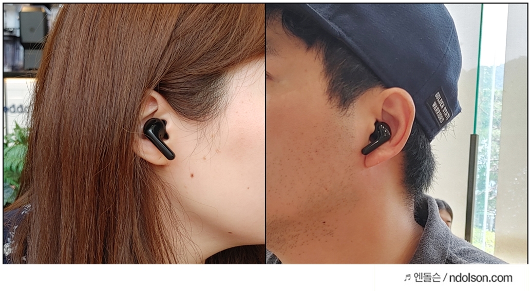 귀에 쏙 들어가는 디자인은 착용감이 좋은데요. 귀에 닿는 부분이기 때문에 무독성, 저자극성 medical grade의 실리콘 이어젤이 적용되어 있습니다. 무독성이라 안심이고요. 프리미엄 이어폰이라 소재부터 좋고 착용감도 편안하네요!