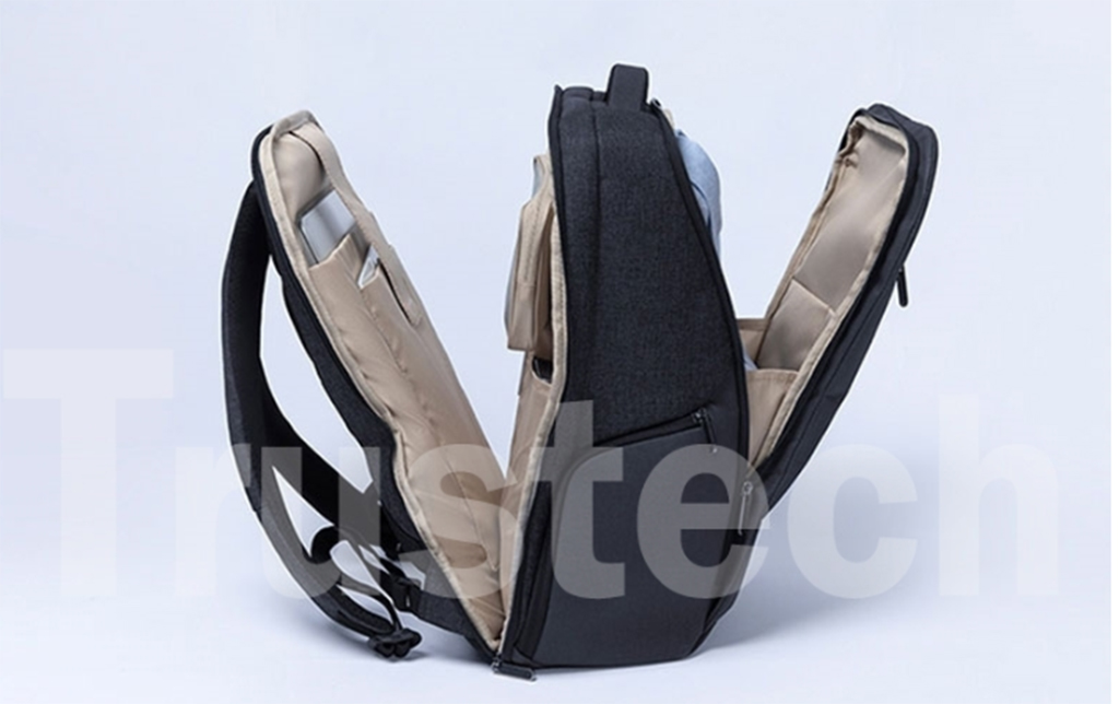 2019년 출시된 샤오미 비즈니스 배팩2는 전작과 외형의 차이는 거의 없습니다. 가죽의 표면과 등부분의 천으로 구성되어 있으며, 수납공간이 많고 편리하게 되어 있습니다.