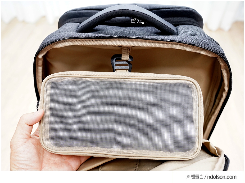 메시 포켓은 안이 보이기 때문에 물건을 넣고 어떤 물건이 들어 있는지 쉽게 확인이 되었습니다.