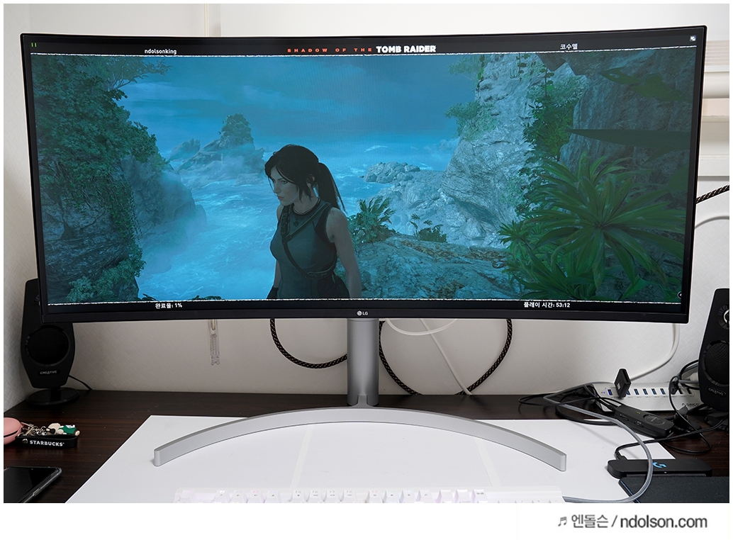 새도우 오브 더 툼레이더 게임은 스토리가 탄탄하고 고화질의 게임으로 즐기는 재미가 큰데, 38인치 울트라와이드로 즐겨서 그런지 몰입감이 더 좋았습니다.