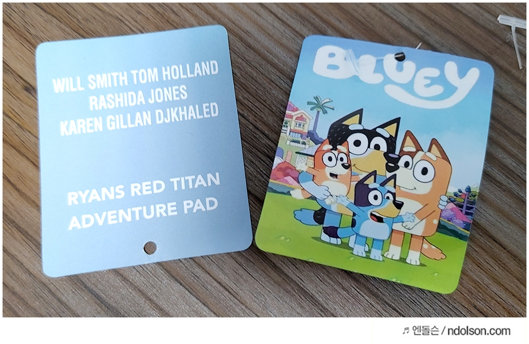 블루이 인형에 붙여져 있는 택을 때고 바로 세탁했어요.