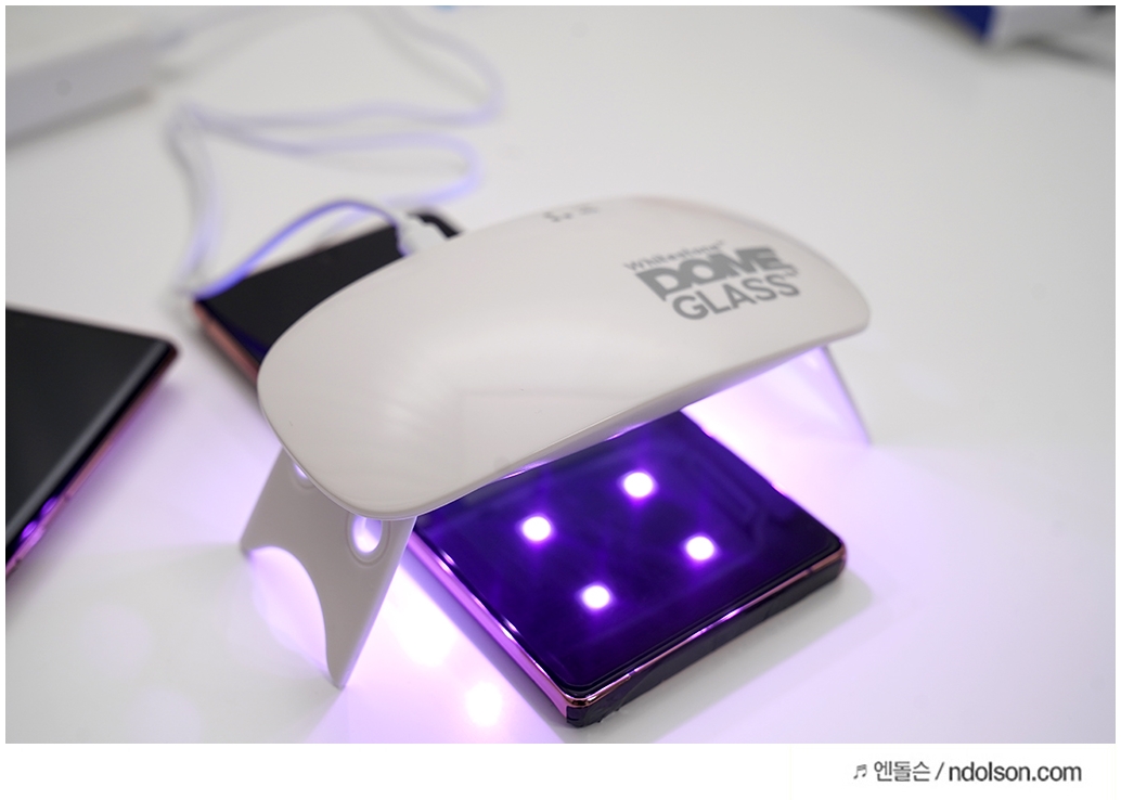 화이트슨토의 돔글라스는 곡면 디스플레이에 특허를 가지고 있고 강화유리를 양면테이프 같은 게 아니라 점착액체로 붙이는 놀라운 기술입니다.