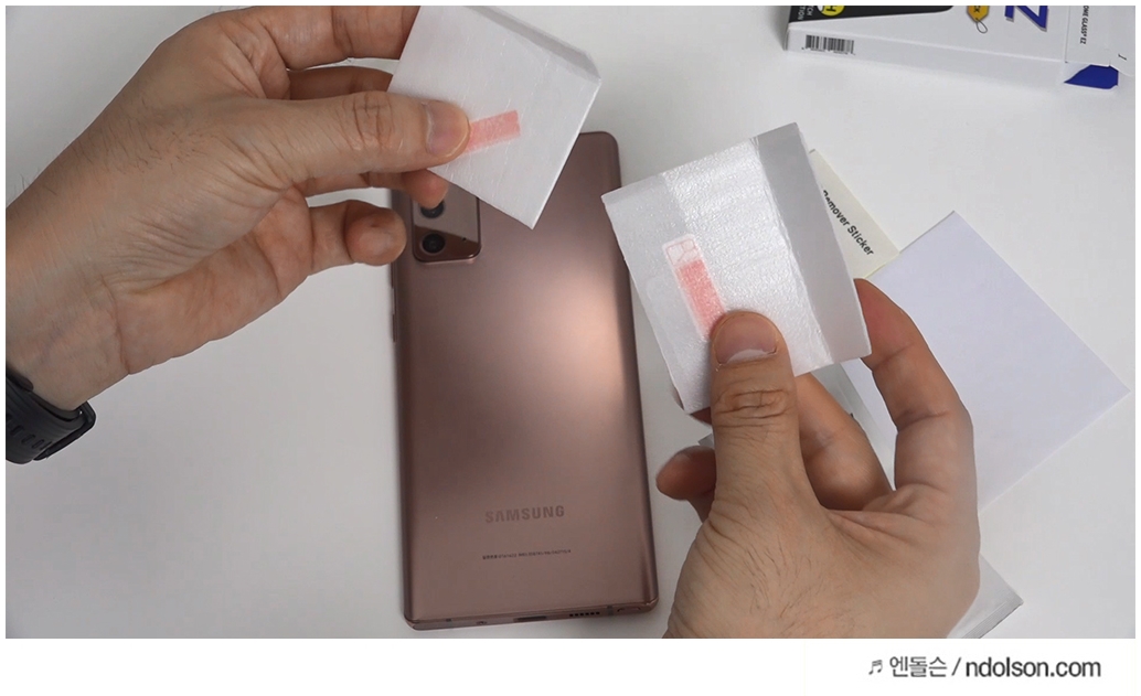 이제 노트20 카메라의 보호필름을 부착해보겠습니다.