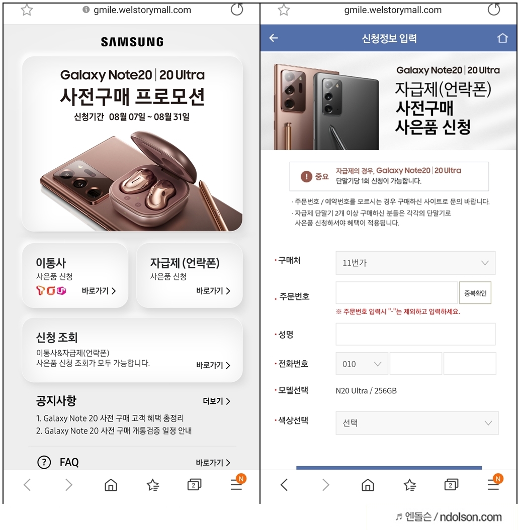 갤럭시 노트20 사은품 신청 방법