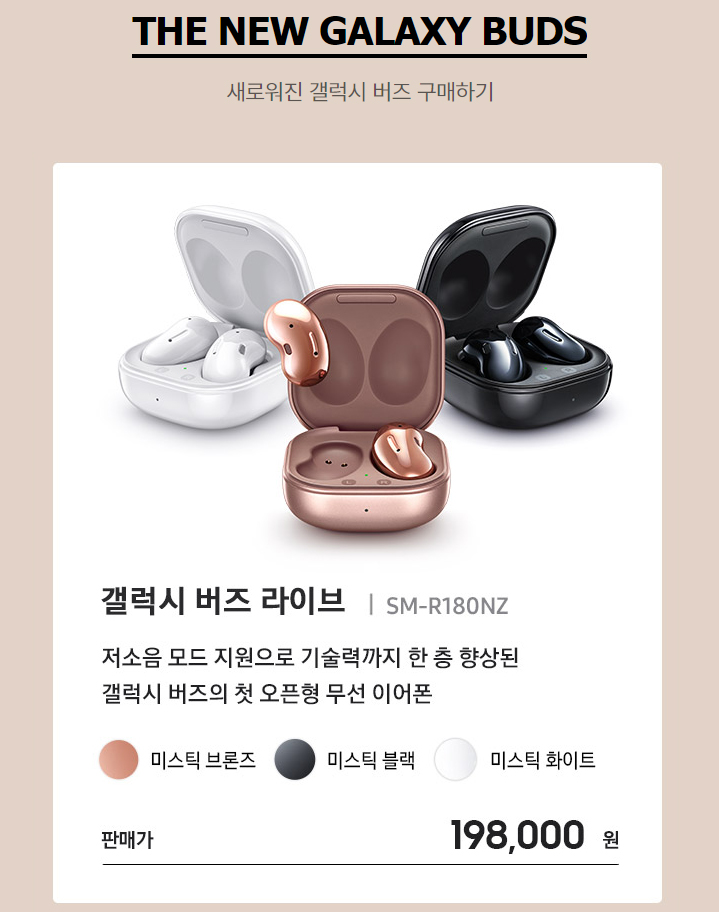가지고 싶은 갤럭시 버즈 라이브 미스틱 브론즈 색상을 깔맞춤하고 싶어 바로 사은품 신청을 하였습니다. 이번에도(?) 곧 노트20 사은품 대란이 벌어질 듯합니다. 갤럭시 버즈 라이브가 공짜라 너무 좋은데, 반대로 중고나라에 다양한 사은품이 싸게 풀리기도 할 것 같습니다.