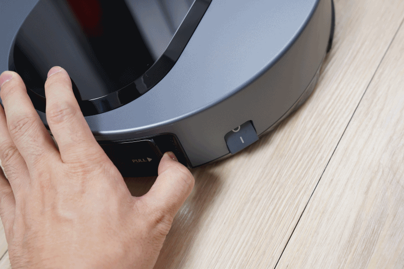 로봇청소기 본체에 전원 ON/OFF 스위치가 위치하고 있다. 평소 충전 이후 절전모드로 동작하게 할 수도 있지만, 물리적으로 명확히 끌 수 있는 스위치도 있다.