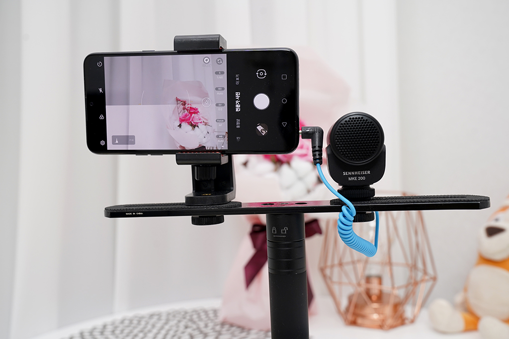 요즘 스마트폰으로 브이로그를 촬영하시는 분들이 많은데요. 이런 분들을 위해서 3.5mm 단자를 사용하여 고성능 젠하이저 MKE200 마이크로 녹음해볼 수 있습니다. 고음질 녹화를 위해서 별도의 마이크는 필수적입니다.