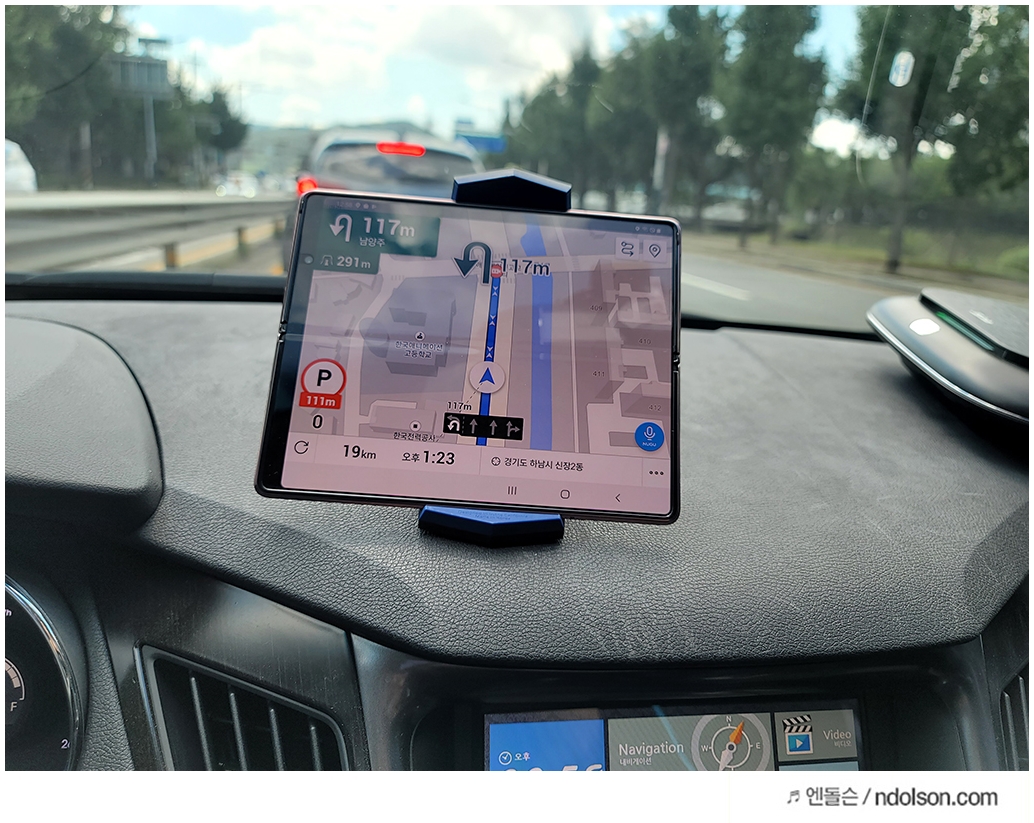 하지만 중요한 것은 갤럭시Z폴드2 거치대를 따로 구매해야겠습니다. 각도가 고정인 기존 제품은 빛 반사와 각도 실패로 내비보기가 쉽지 않을 때가 있었습니다.