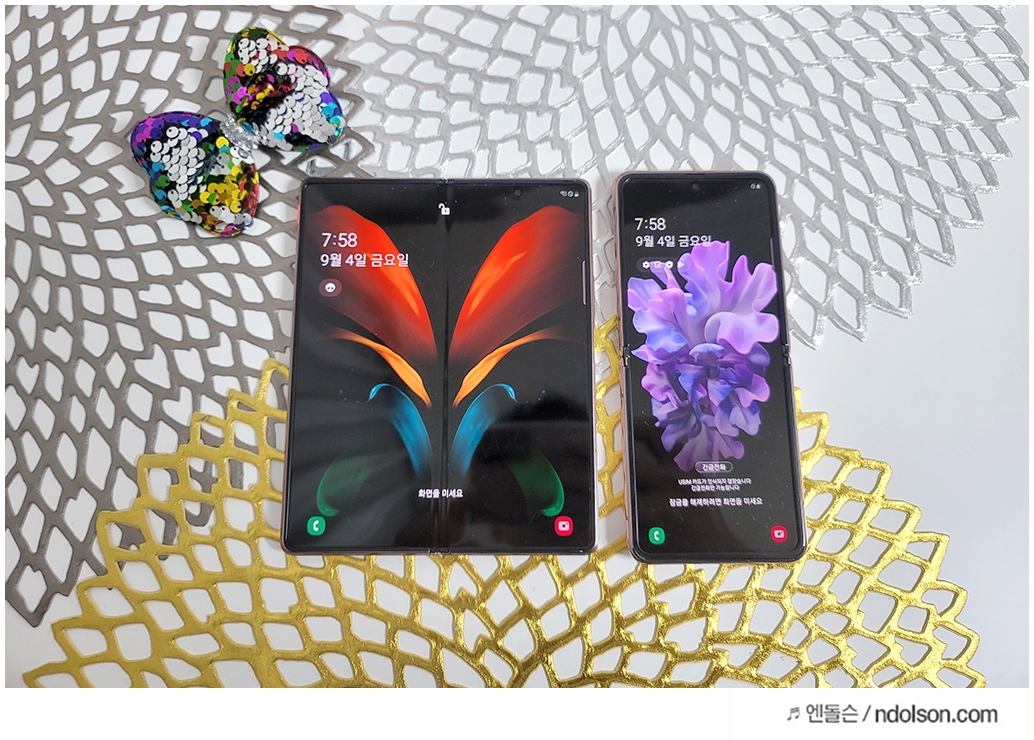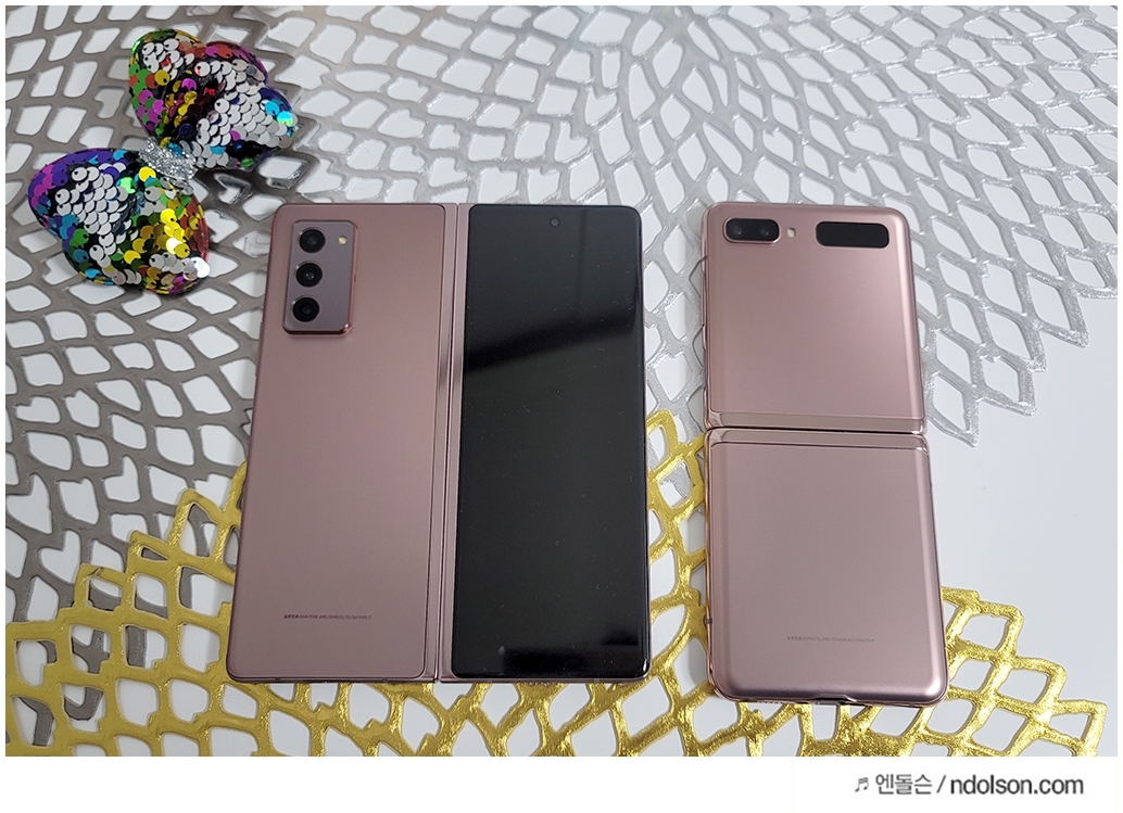 최신 스마트폰인 갤럭시Z폴드2와 갤럭시Z플립2을 비교해보았습니다. 개인적으로 새로나온 브론즈 색상이 남자가 쓰기에도 이쁜 느낌이 듭니다. 무광이라 지문도 묻지 않아 블랙 유광보다는 더 좋습니다.
