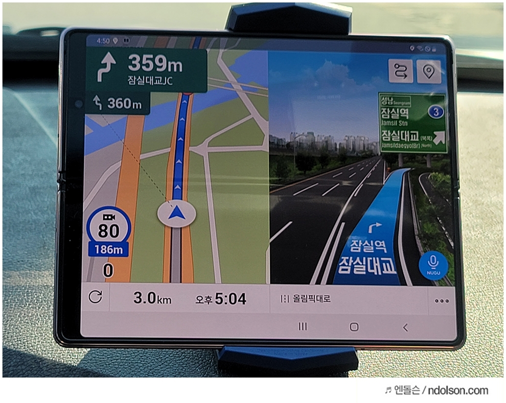 첫번째 당연하겠지만 갤럭시 폴드2는 내비게이션으로 쓰기 참 좋습니다. 단점도 있지만요.
