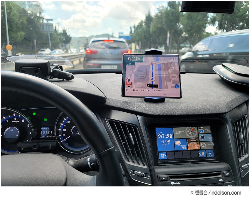 하지만 중요한 것은 갤럭시Z폴드2 거치대를 따로 구매해야겠습니다. 각도가 고정인 기존 제품은 빛 반사와 각도 실패로 내비보기가 쉽지 않을 때가 있었습니다.
