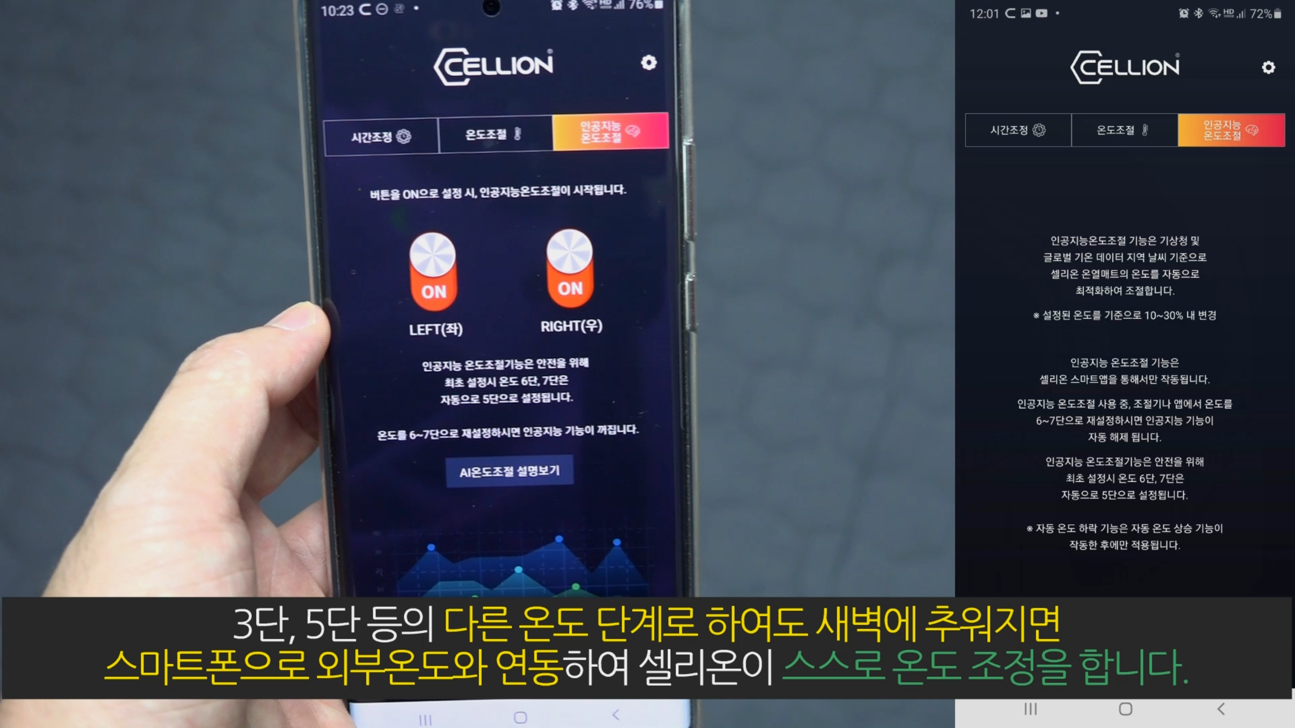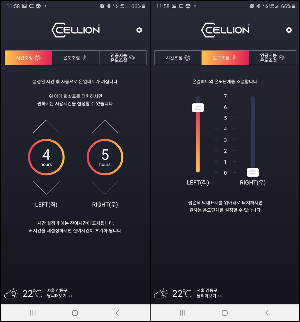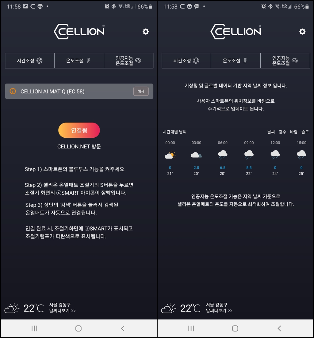 셀리온 앱을 통해서 온도와 시간 등을 쉽게 조작할 수 있는데요.