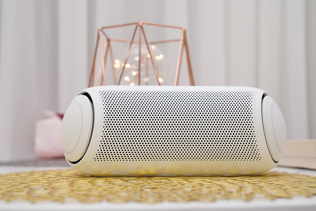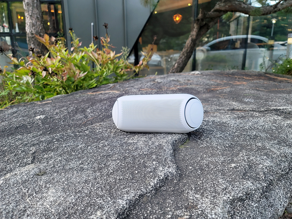 앞에서도 이야기 했지만 전체적인 디자인을 보면 필자가 사용한 전작의 LG 엑스붐Go 와 달라진 외형을 볼 수 있습니다. 보다 둥글둥글한 외형과 양쪽에 강력한 사운드 울림을 느낄 수 있는 듀얼 액션 베이스는 신선한 느낌을 줍니다.
