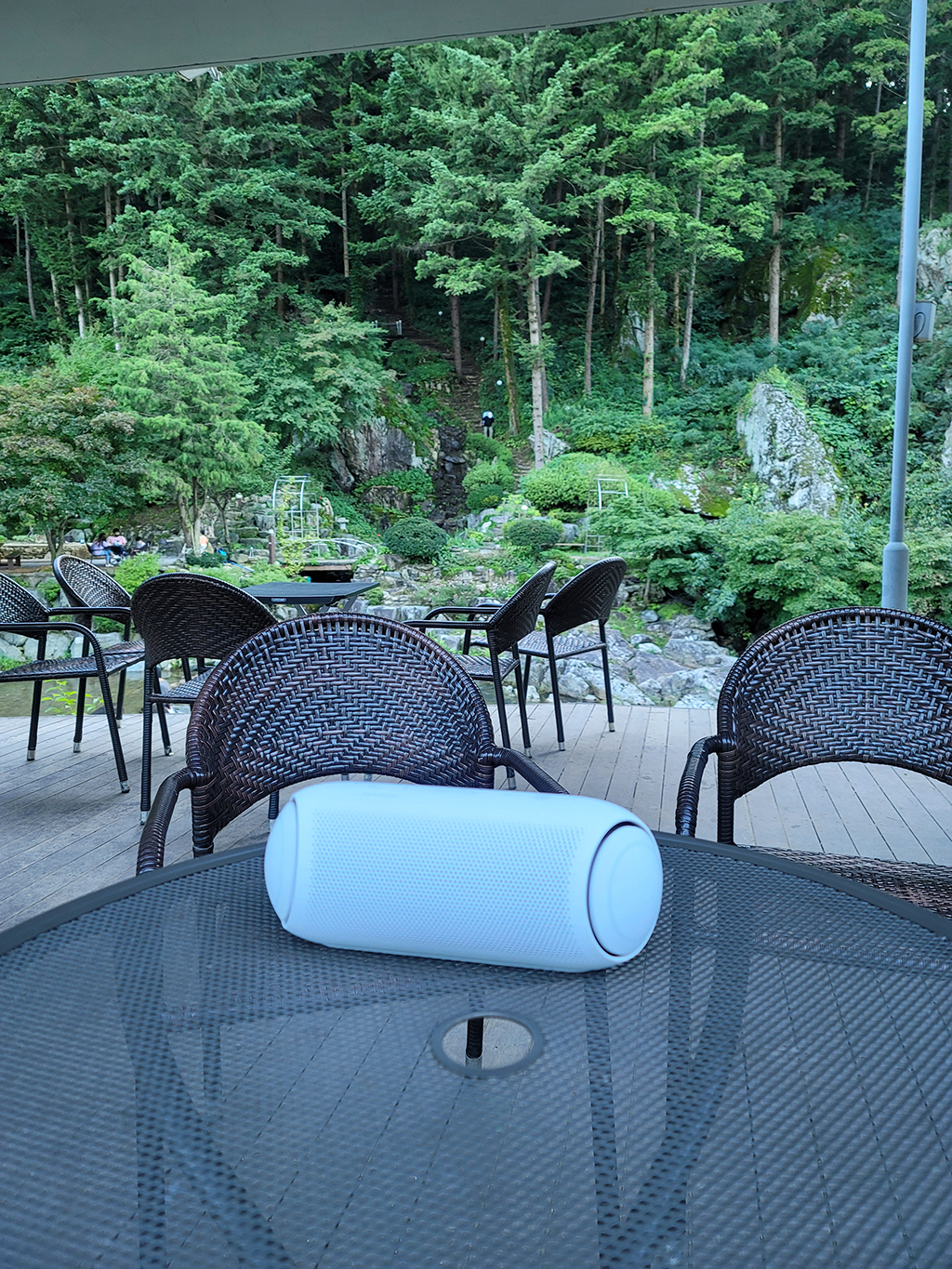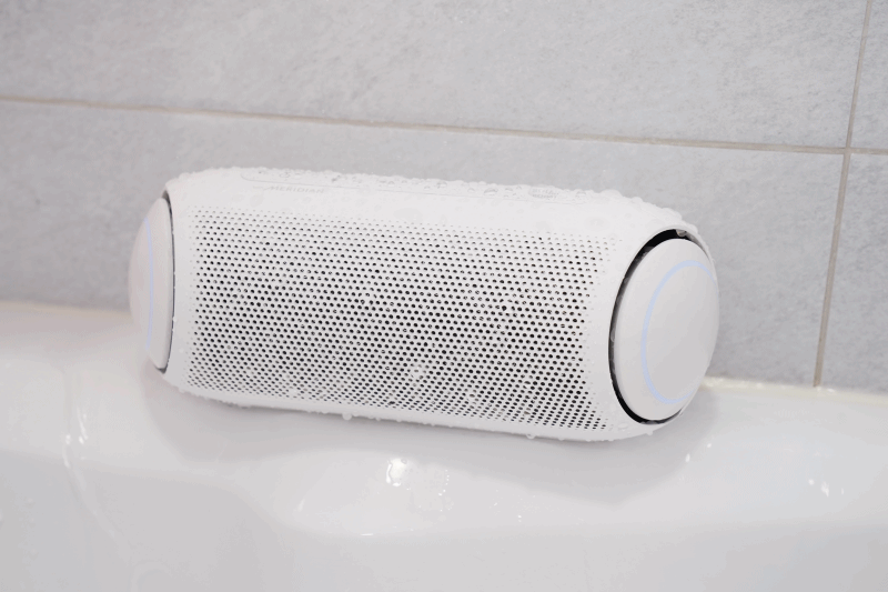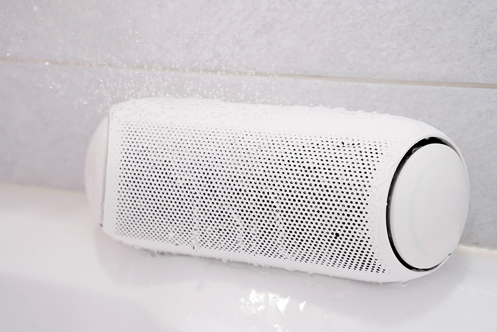 실험 삼아 목욕탕에서 약한 수준의 샤워기로 물을 살짝 뿌려 보았는데요, LG엑스붐Go 로 음악을 듣는데는 문제가 없었습니다. IPX5 방수가 지원되는 스피커라 방수로부터 안전해서 활용성이 더 좋네요. (어디까지나 실험이니 방수 기능 설명을 위한 참고로 봐주세요!)