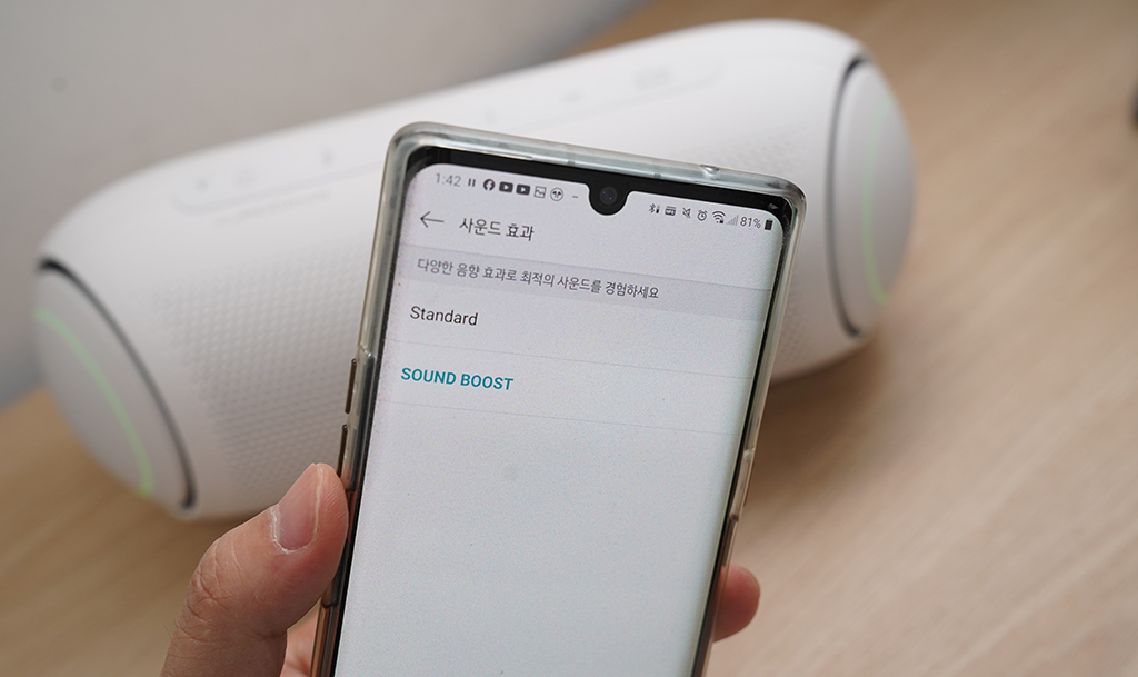 앱에서도 사운드 부스트를 켜거나 스탠다드로 변경할 수 있습니다. 멀리서도 쉽게 앱 조작이 편하신 분은 앱을 이용하는 것이 낫겠죠.