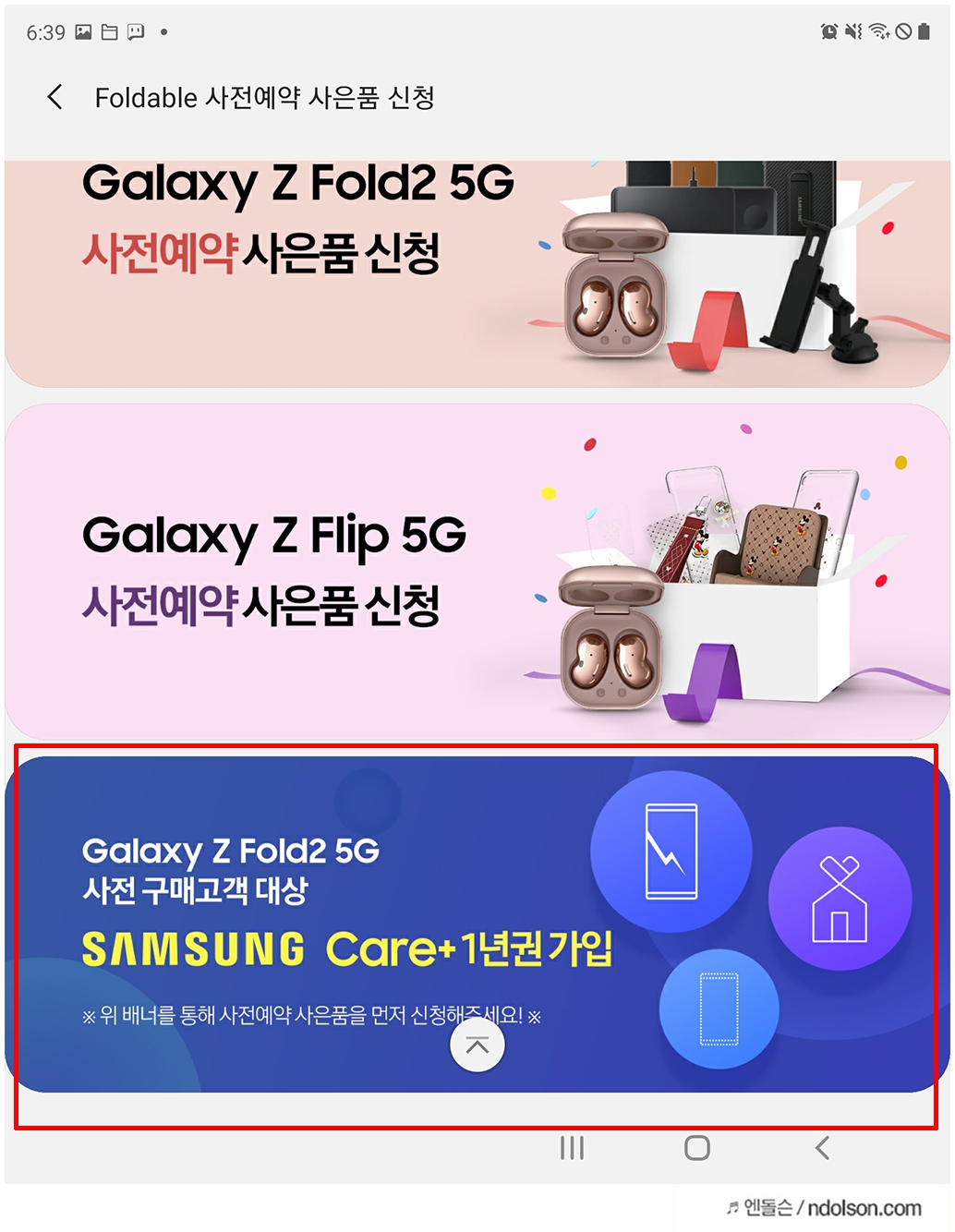 삼성 멤버스 앱에서 갤럭시 폴드블 사전예약 사은품 신청의 배너를 눌러서 신청하면 됩니다.