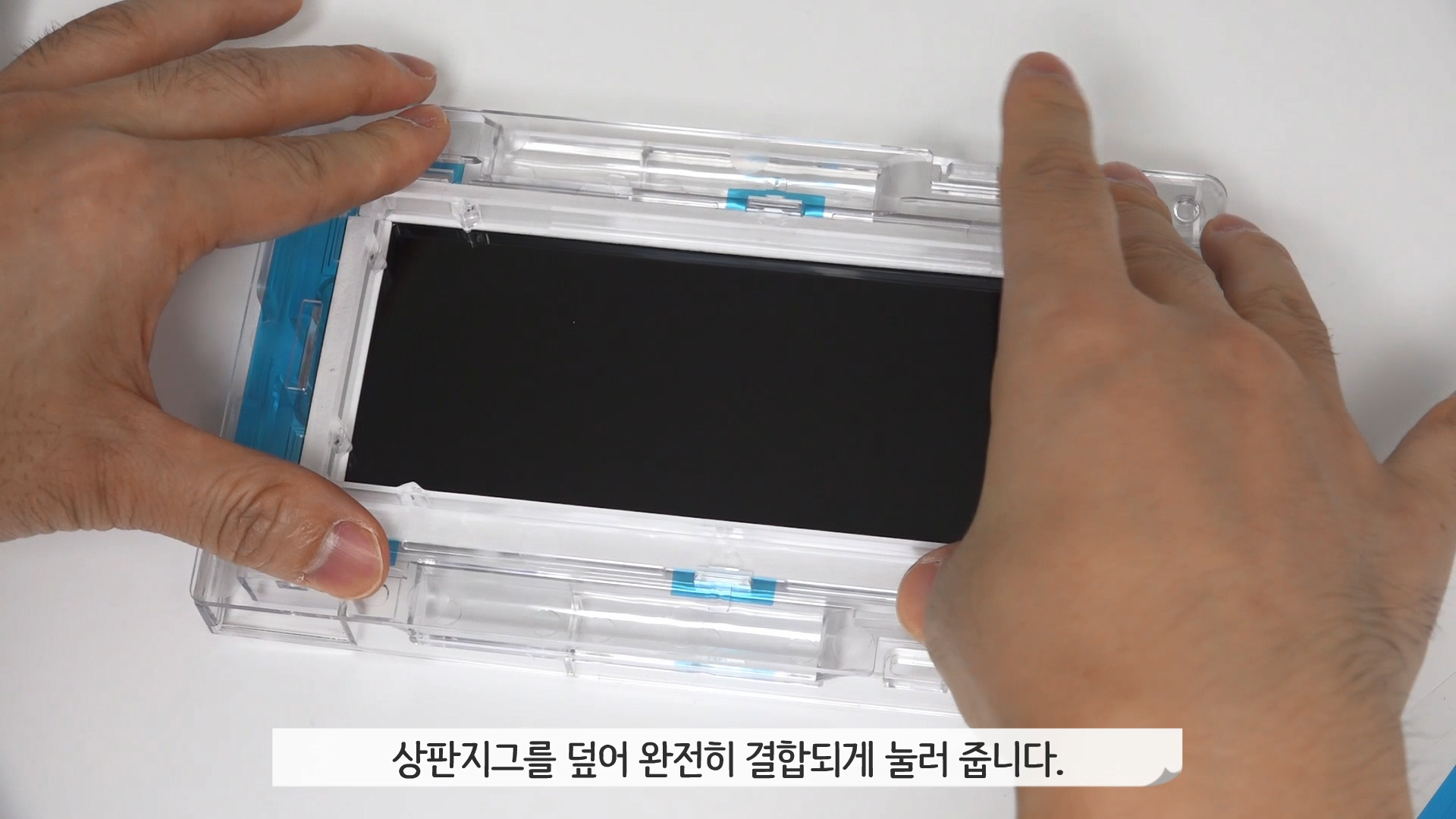 상판 지그를 위/아래에 맞게 모양을 보고 강하게 눌러 결합하여 줍니다.
