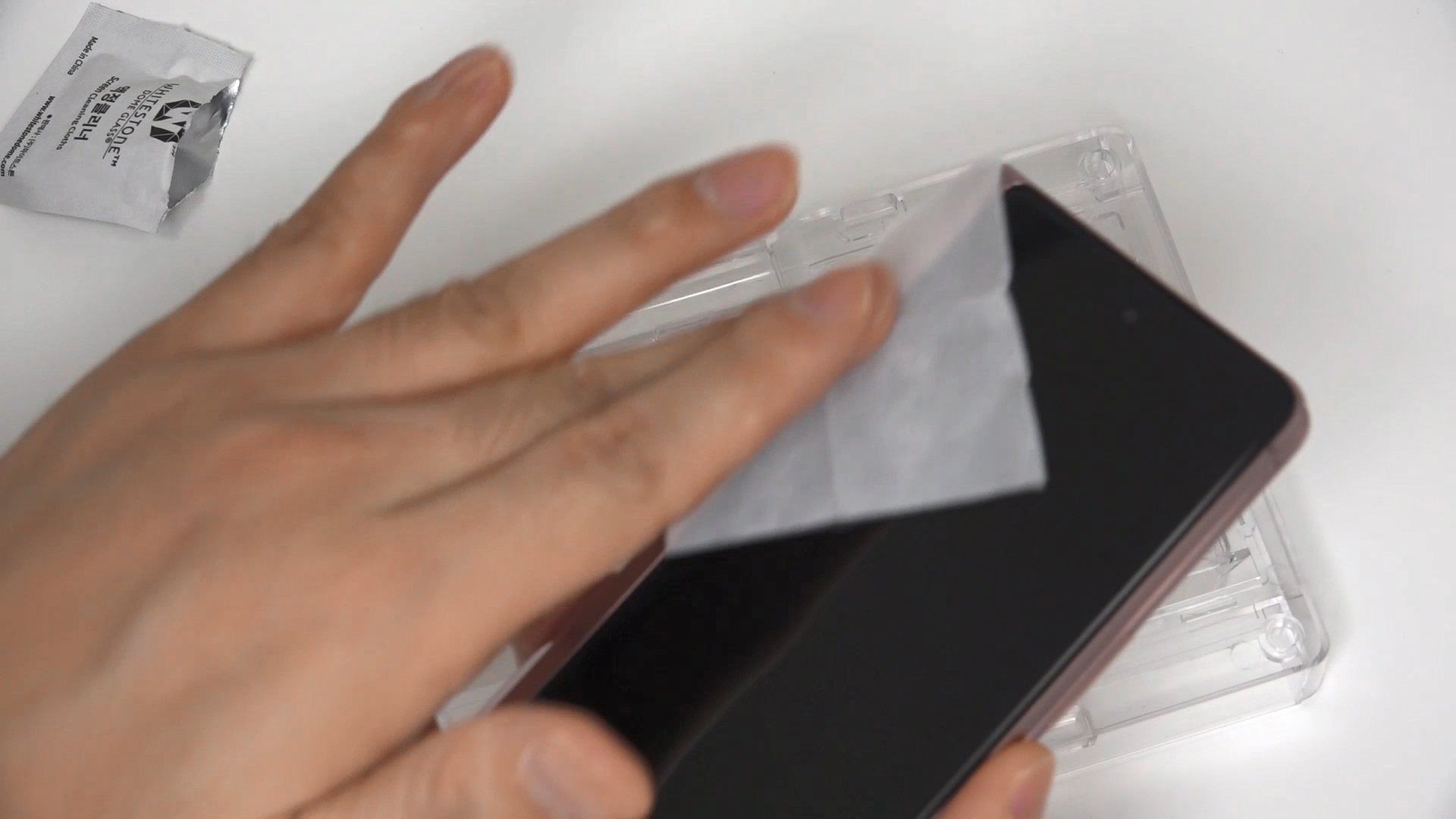 액정클리너(알콜솜)으로 꼼꼼하게 닦아 줍니다. 혹시나 점착액이 세어 나올 수 있기 때문입니다.