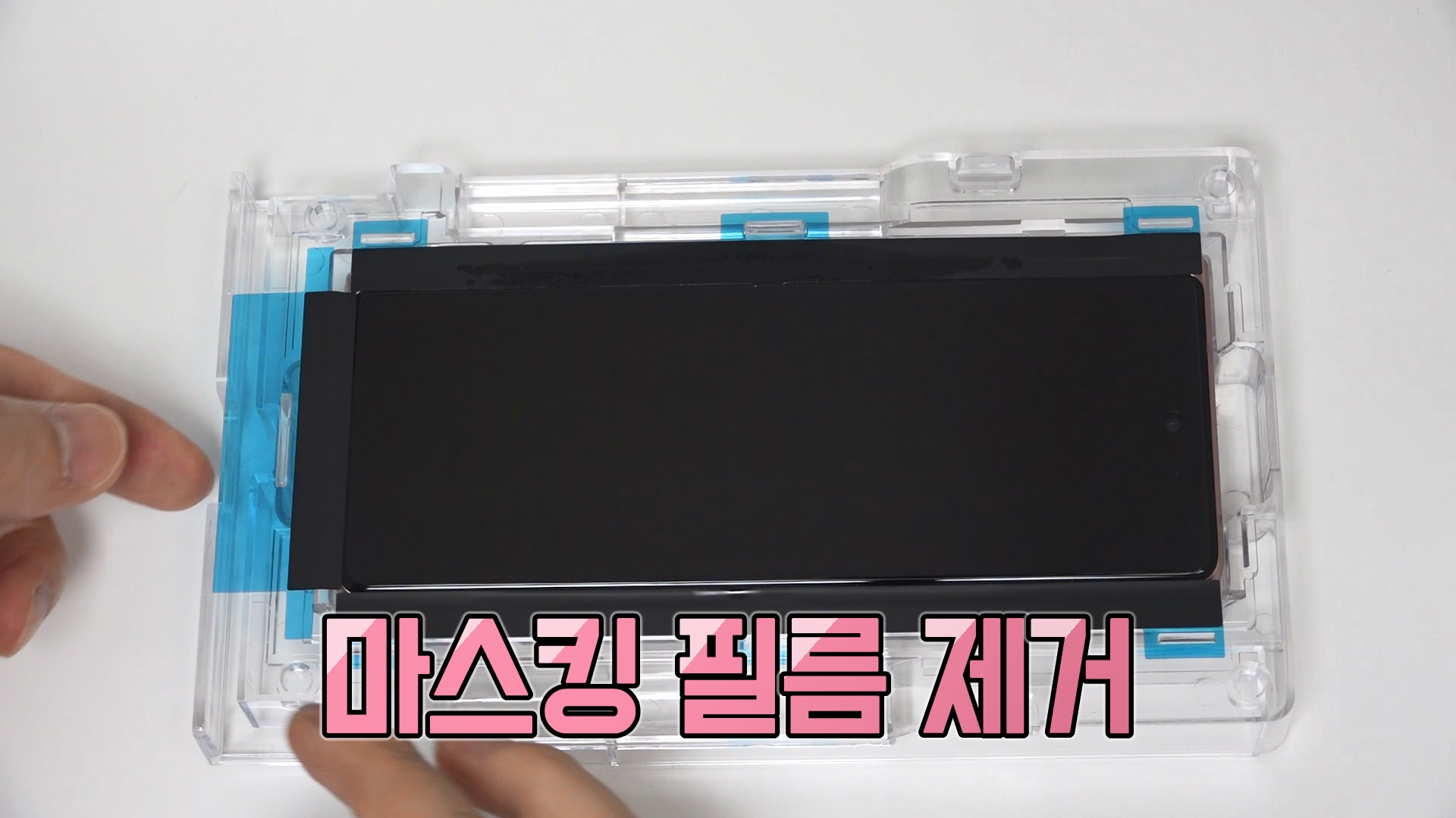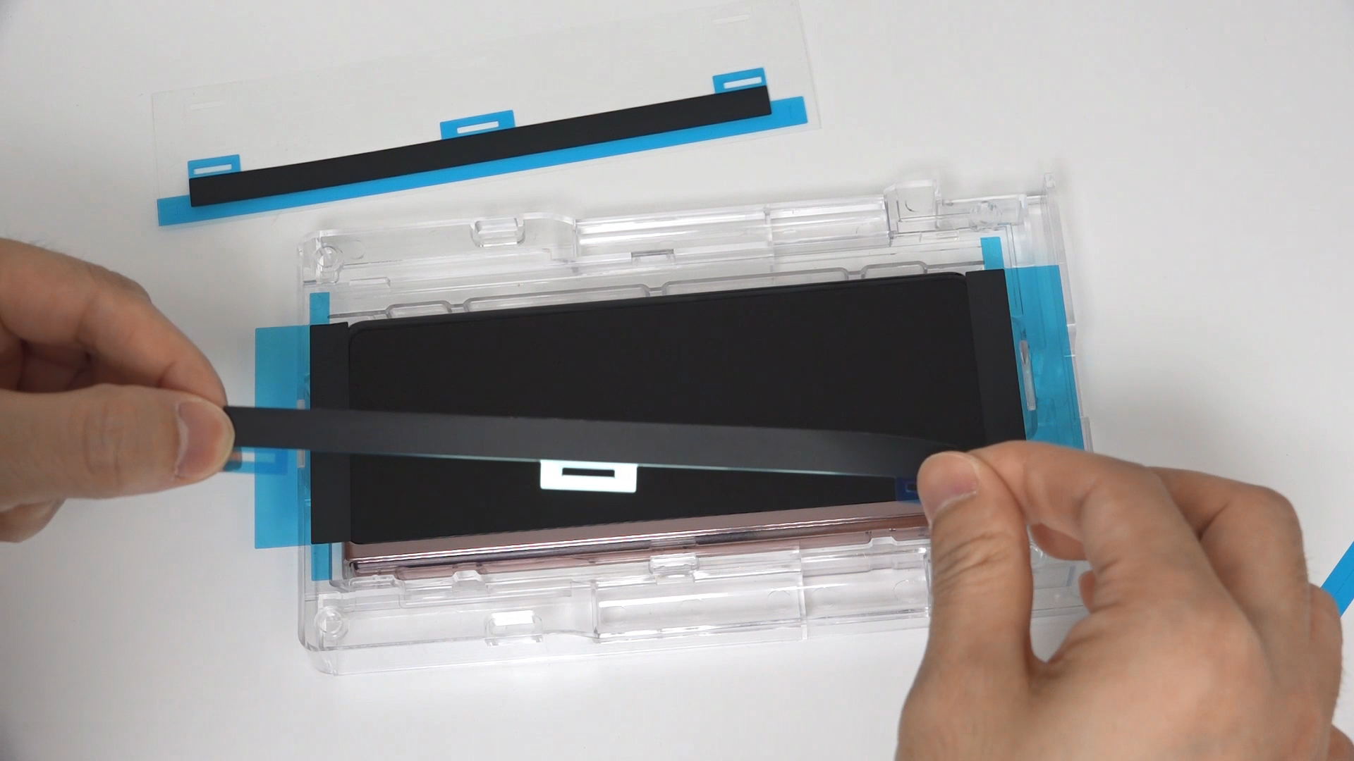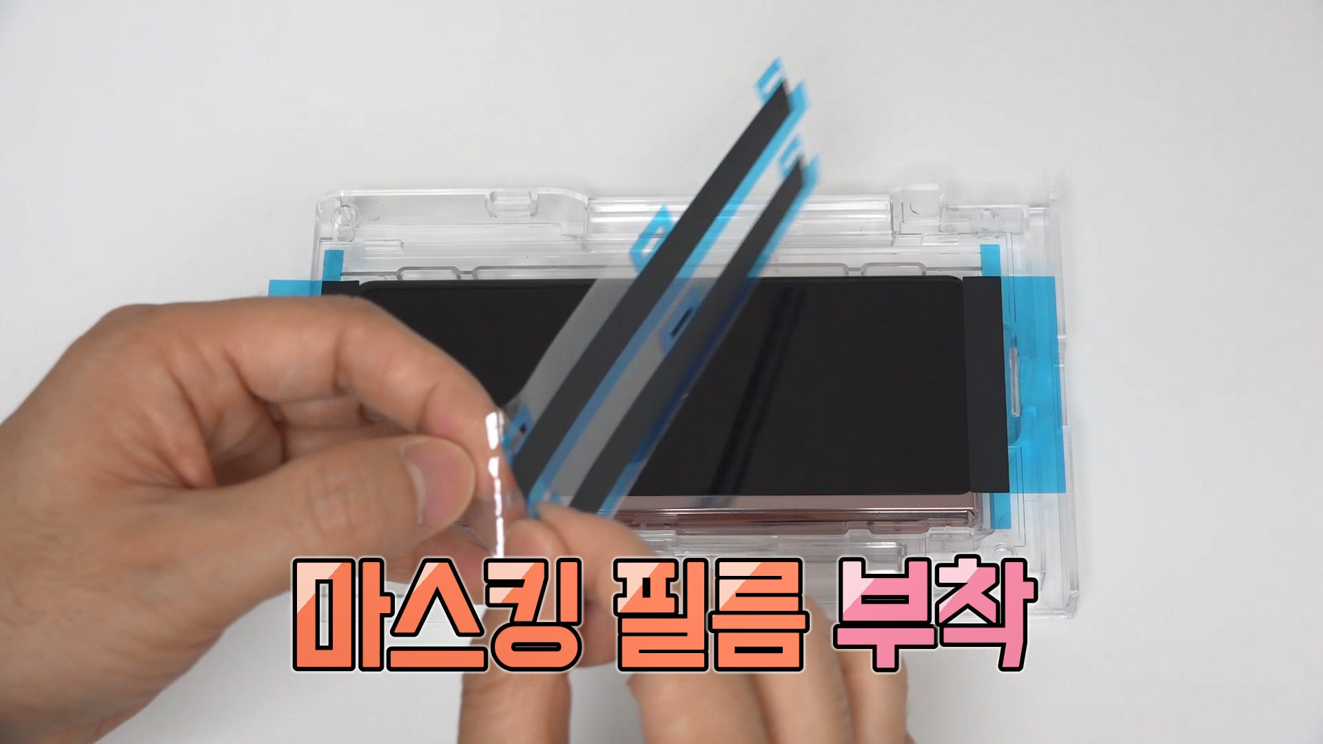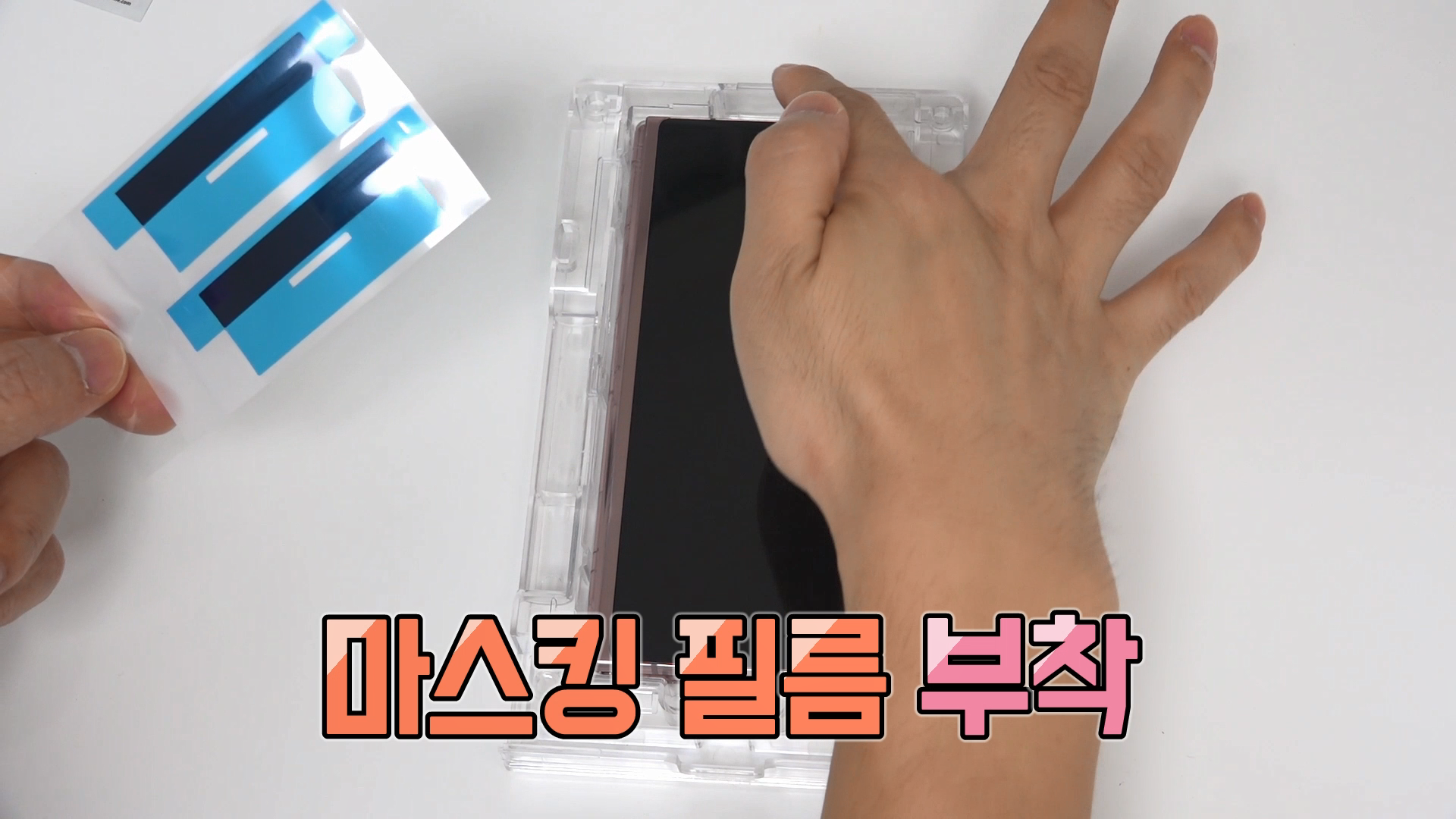 주의사항으로 마스킹 필름을 꼼꼼히 부착하여야 합니다. 상단/하단, 좌우 측면에 마스킹 필름을 부착합니다. 주의하지 않으면 점착액이 디바이스에 들어가 고장 날 우려가 있습니다.