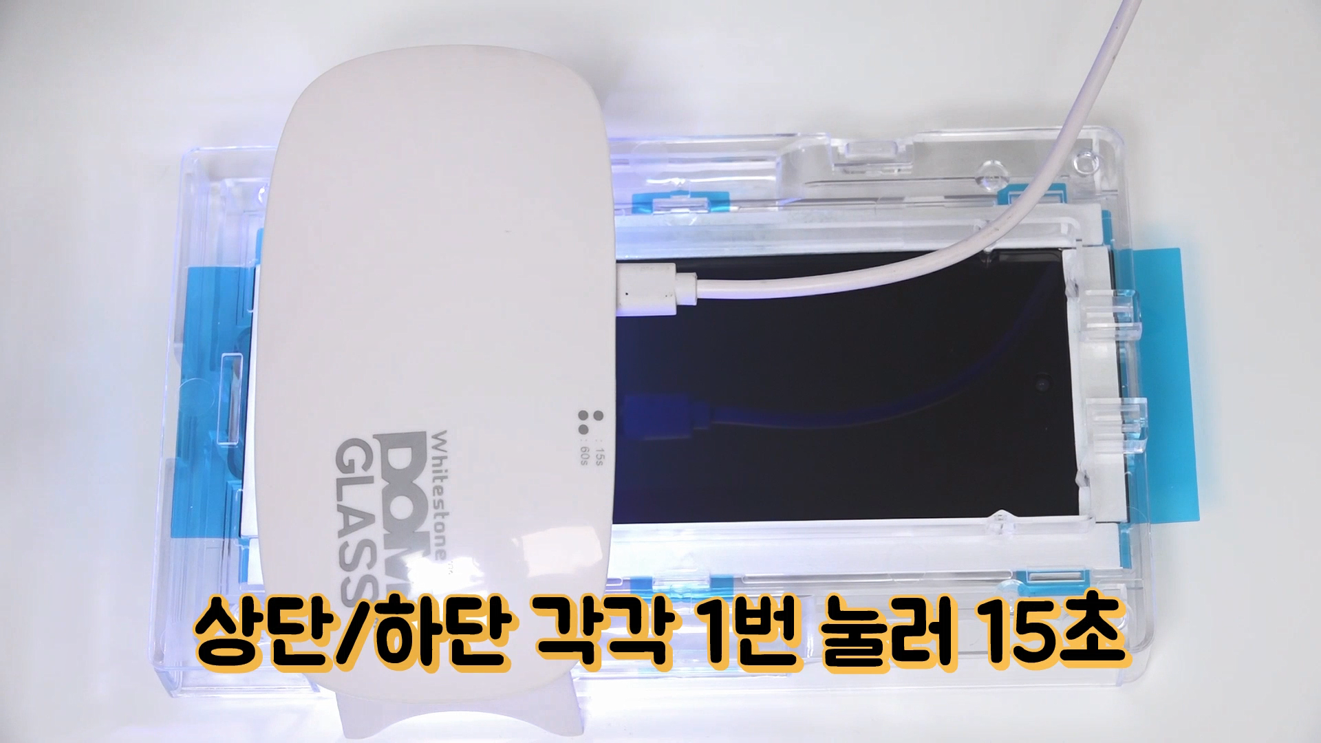 1차 경화를 위해서 상단, 하단을 각 15초 경화를 시켜 줍니다. UV램프는 1번 누르면 15초 동작합니다.