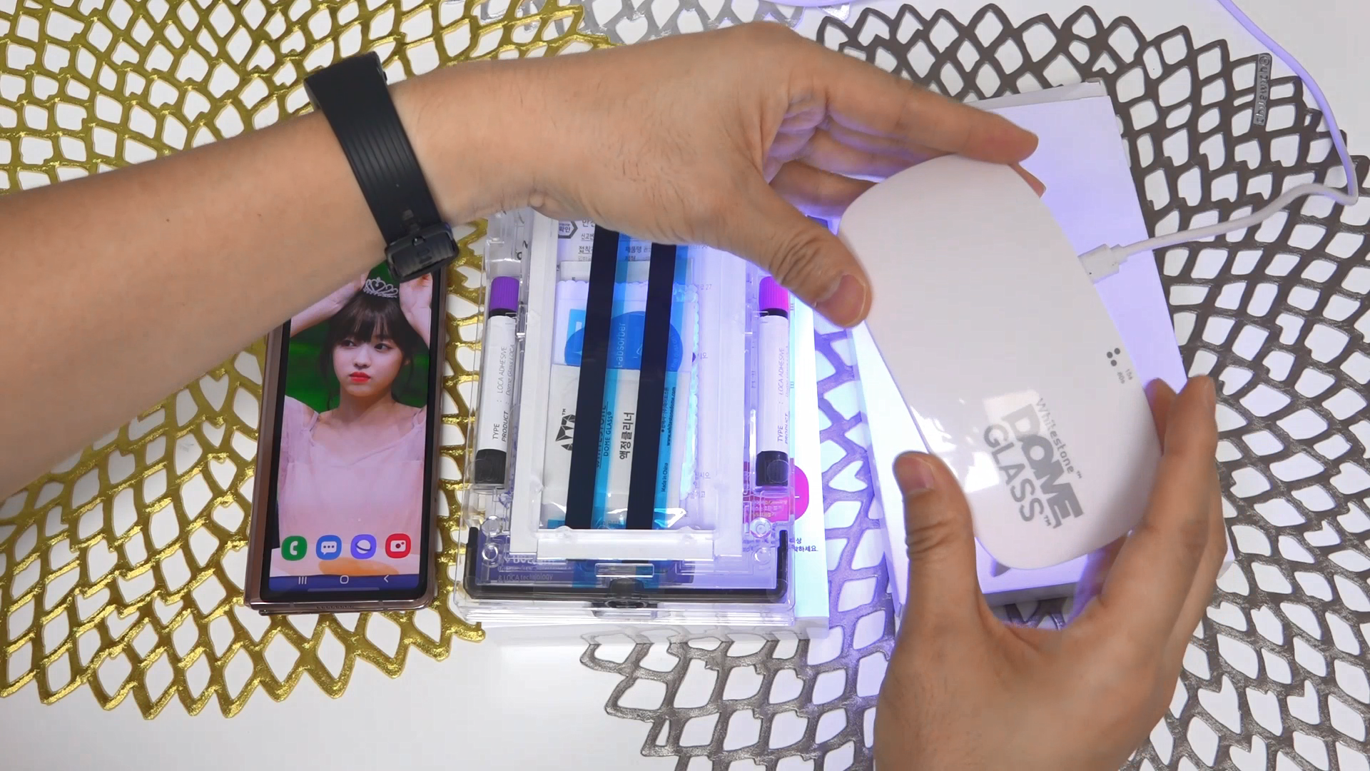 제일 먼저 돔글라스 강화유리는 곡면 특허를 가지고 있는 업체로 획기적으로 강화유리와 디스플레이 사이의 유격이 없게 점착액이 메워주는 방식입니다. 또 틀 위에 올려두고 작업하기 때문에 매우 안정적으로 셀프 부착도 쉬운데요.