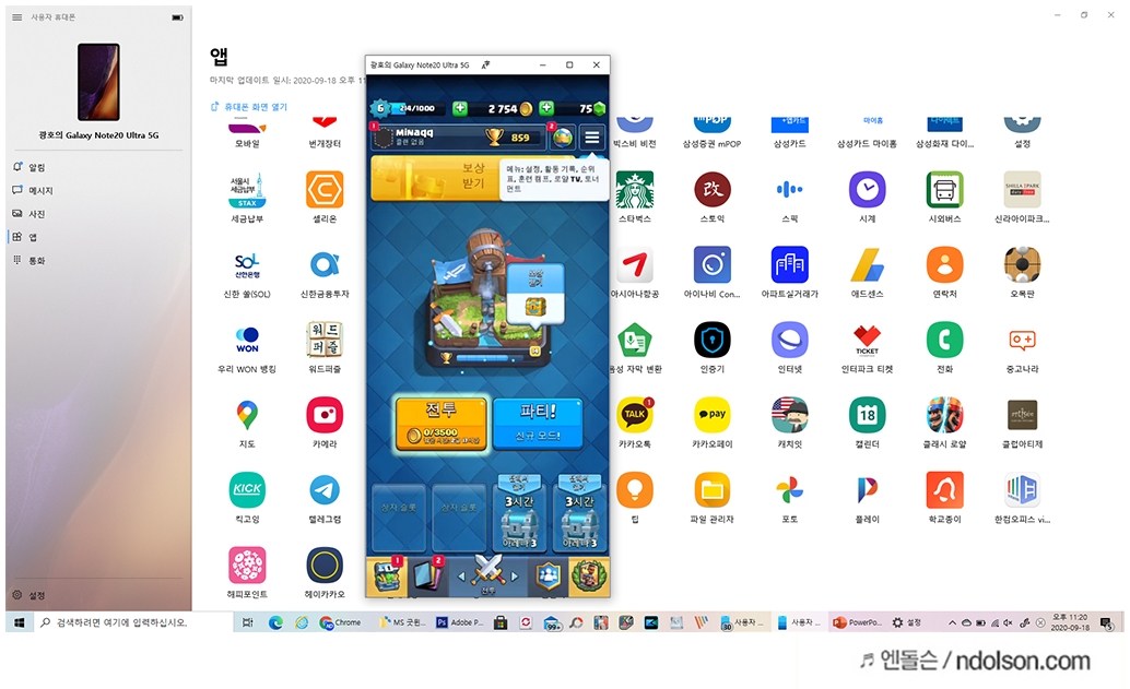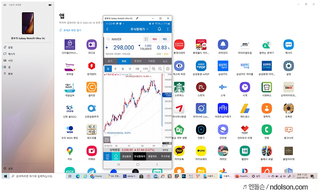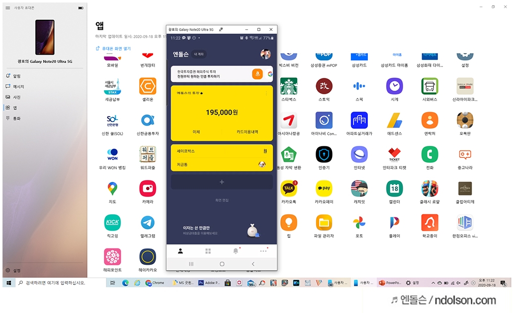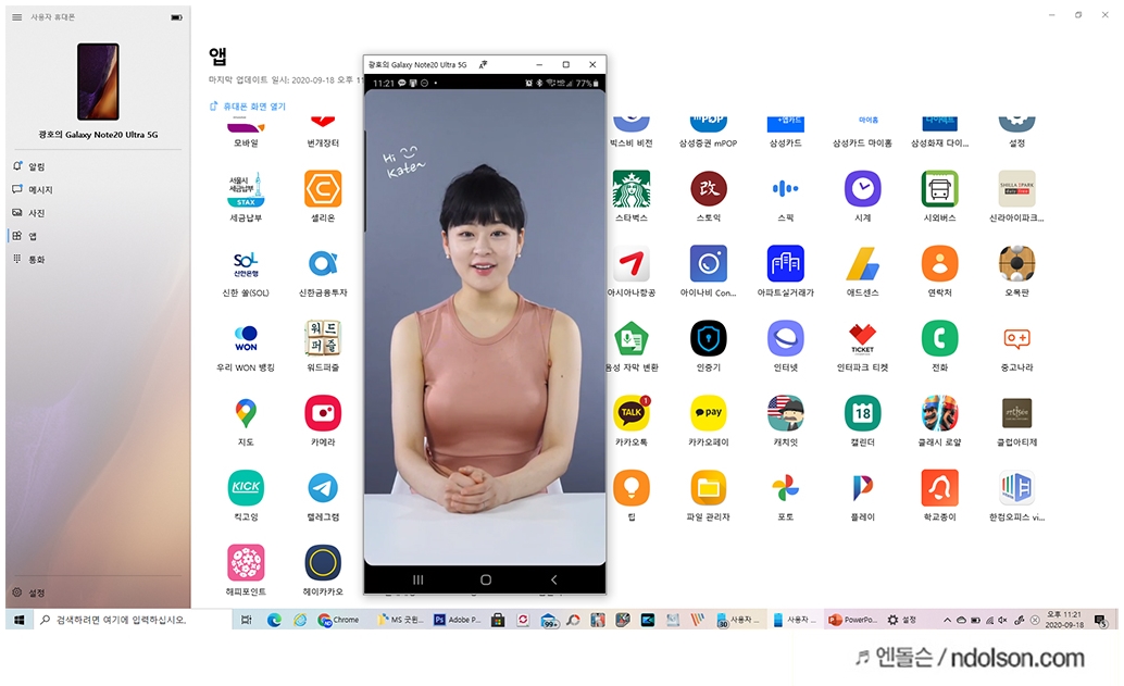 윈도우10과 갤럭시 Z 폴드2 및 갤럭시 노트20 울트라를 사용하고 있는 데, Dex가 무선으로 바뀌였다는 이야기는 들어서 써보고 싶었지만, 덱스를 지원하는 최신 TV 및 모니터에서만 지원이 가능합니다. 다소 아쉽다는 생각이 들었는 데, 윈도우와 연결이라는 기능을 통해 무선으로 스마트폰의 앱 실행 및 푸시를 컴퓨터에서 쉽게 확인할 수 있어 편리하게 사용중입니다.