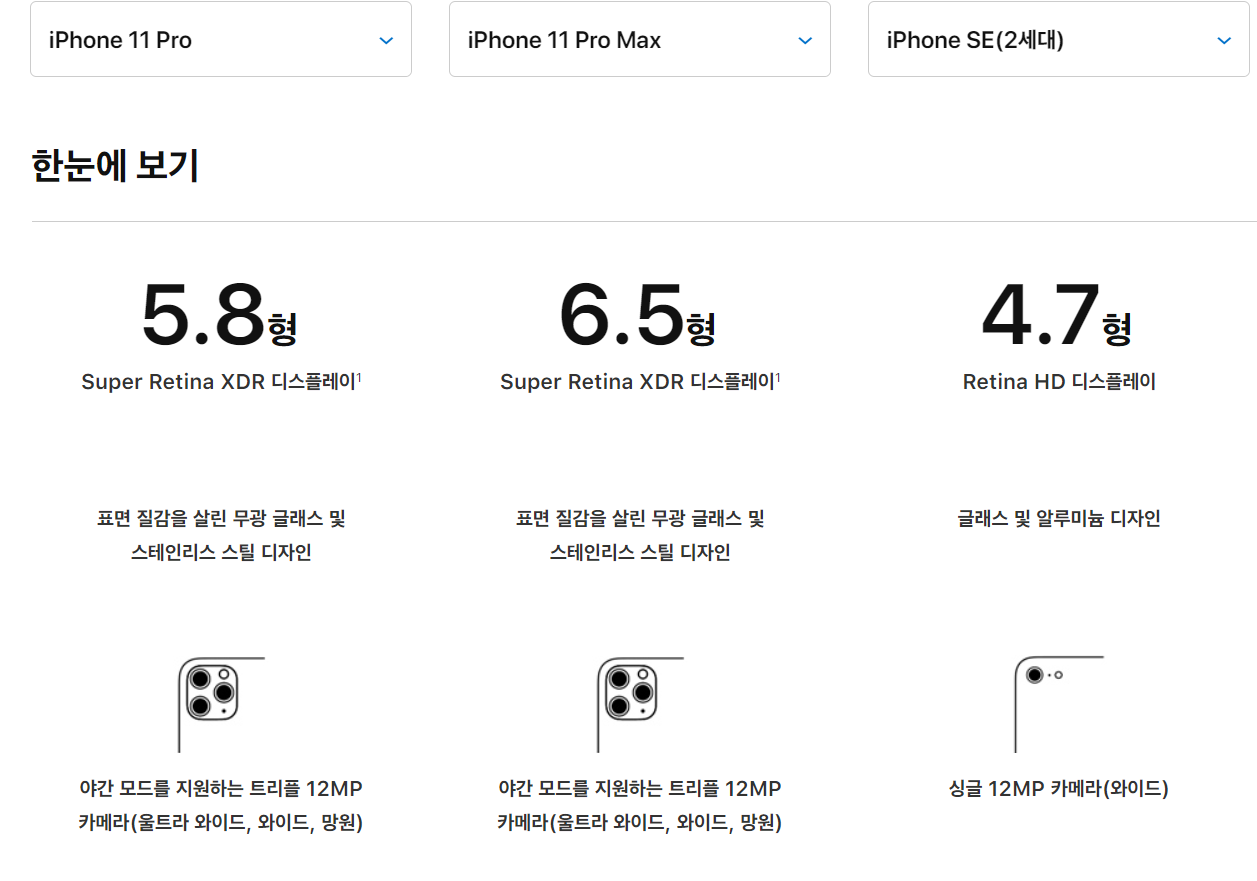 이전 아이폰11 시리즈와 아이폰 SE의 인치를 비교해보면, 아이폰SE 4.7인치, 아이폰11 프로 5.8인치, 아이폰11 프로 맥스 6.5인치를 가지고 있습니다. 아이폰12 미니가 얼마나 작은지 아시겠죠? 작은 만큼 휴대성은 돋보이며, 배젤이 적어 아이폰SE 보다 큰 느낌일겁니다.