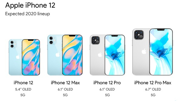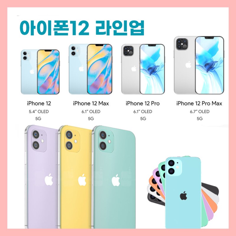 아이폰12 모델 : 아이폰12 미니(5.4인치), 아이폰12(6.1인치), 아이폰12 프로(6.1인치), 아이폰12 프로맥스(6.7인치)