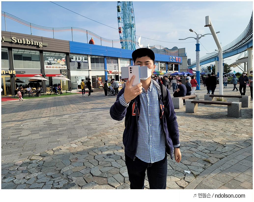 필자가 사용해본 LG 윙 카메라 사진 느낌은 갤럭시Z폴드2와 갤럭시노트20U와 비교하면 과하지 않고 자연스러운 색감과 저조도에서 밝은 사진을 뽑아주었습니다. 색깜이 자연스럽고 과하지 않은 색감이라는 게 좋을 수도 있고, 밋밋하다고 단점이라고 할 수 도 있습니다. 하지만 원치 않은 후보정보다는 좋은 데, 하늘, 빌딩 등에 따라 알아서 잘 찍어주었습니다.
