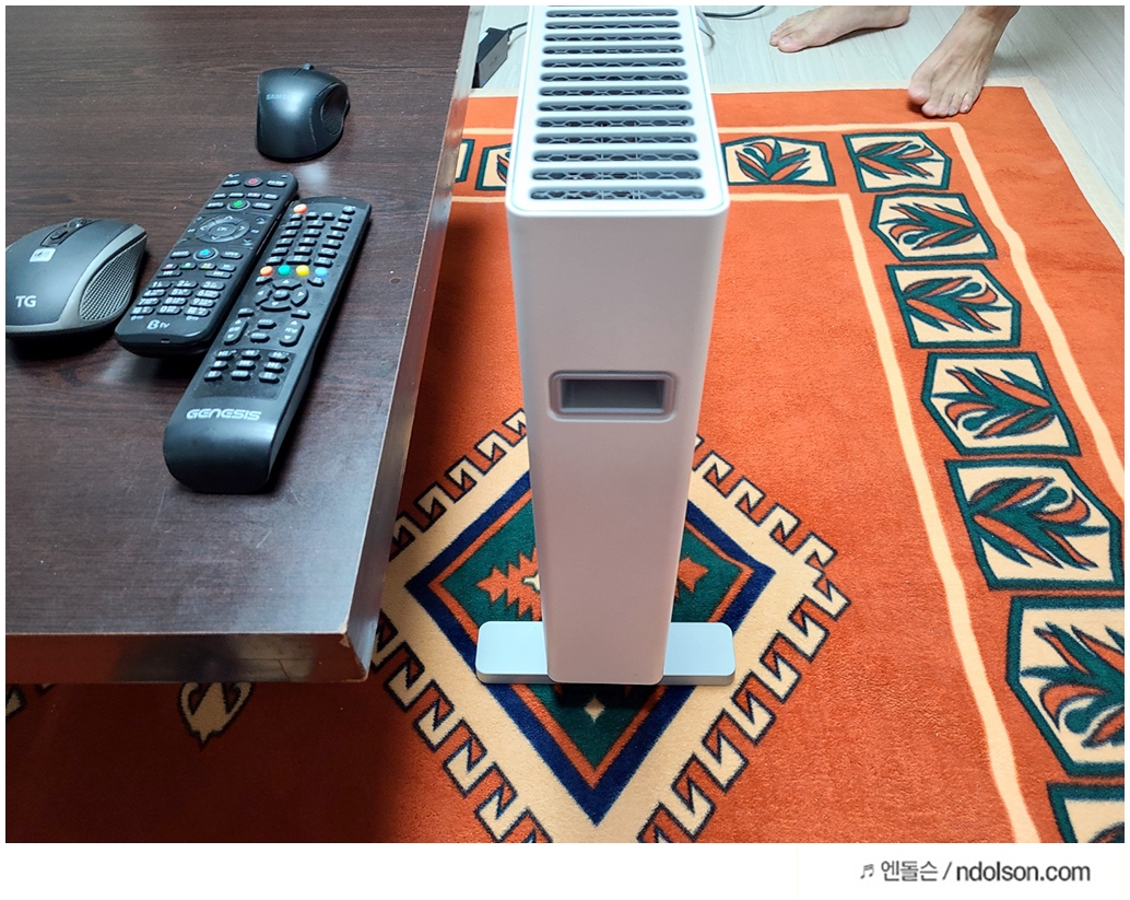 뜨거운 열기가 켜자마자 바로 나옵니다. 일부 전기세 이야기를 하는데, 상화에 따라 다릅니다. 빠르게 집안 전체를 따뜻하게 하다는 점은 좋지만, 아주 장시간 틀어 두면 모든 열기계가 그렇듯 전기세를 감안 해야 합니다.