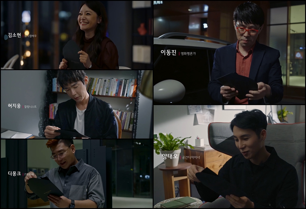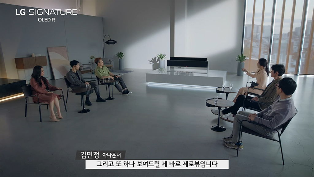 허지웅 칼럼니스트, 김소현 뮤지컬 배우, 이동진 영화평론가, 양태오 인테리어 디자이너, 유튜버 디몽크 5명이 한 자리에 모여 LG 시그니처 올레드 R 과 마주하였고, 김민정 아나운서의 진행으로 본 행사가 시작되었습니다.