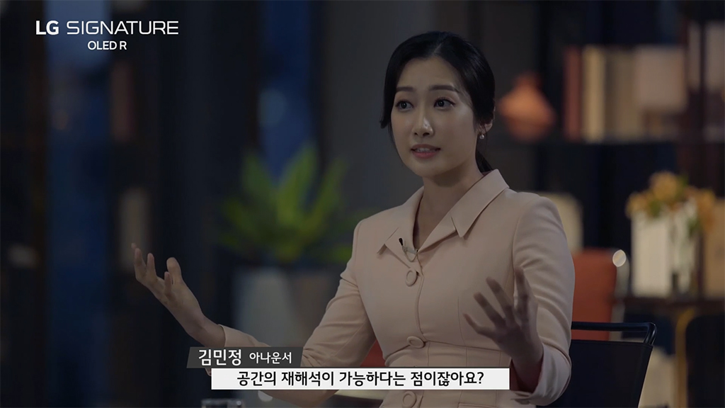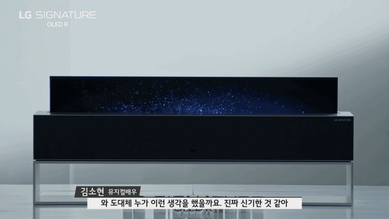 제로뷰부터 라인뷰, 풀뷰에 이르기까지 자유로운 연출도 변신이 가능한, 말 그대로 신개념 폼팩터를 자랑하는 LG 시그니처 올레드 R인데요. 뮤지컬 배우 김소현 씨 말처럼 누가 이런 생각을 한 것인지 대단합니다.