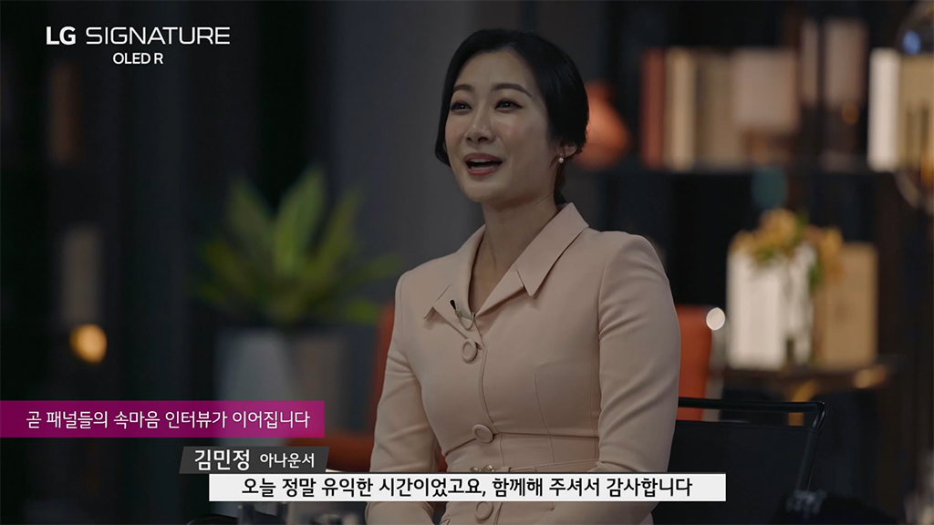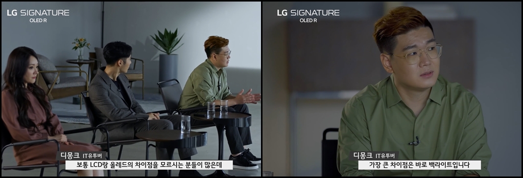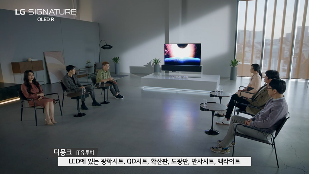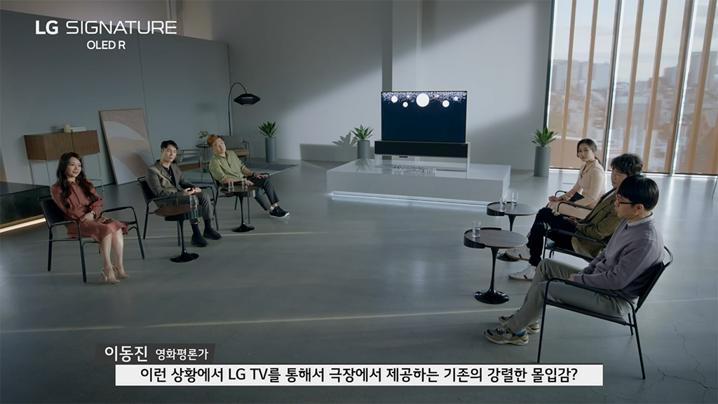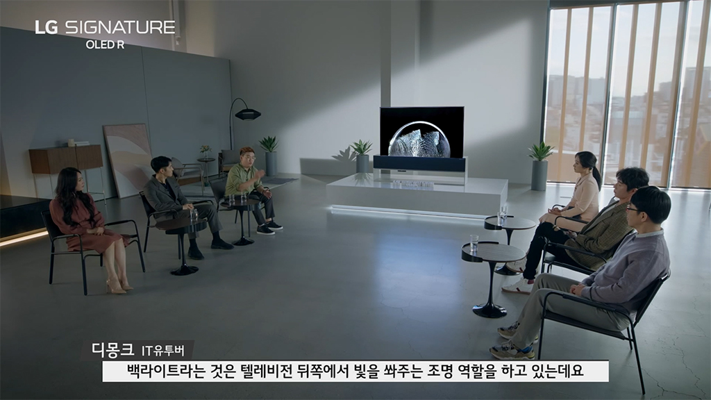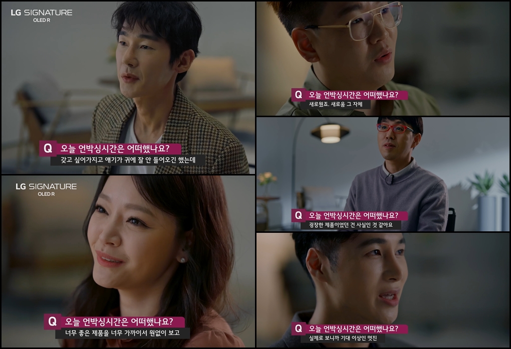 토크 쇼 방식으로 진행된 이번 LG 시그니처 올레드 R 출시 행사에는 허지웅 칼럼니스트, 김소현 뮤지컬 배우, 이동진 영화평론가, 양태오 인테리어 디자이너, 유튜버 디몽크 등의 유명인사가 초대되었습니다.