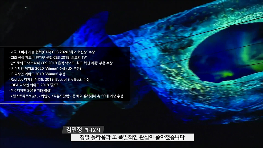 CES 2019 최고의 TV로 혁신상을 수상하였고, 미국 소비자 기술 협회(CTA) CES 2020 최고 혁신상 수상, CES 공식 파트너 엔가젯 선정 CES 2019 최고의 TV, 안드로이드 어소리티 CES 2019 톱픽 어어드 최고 혁신 제품 부문 수상, iF 디자인 어워드 2020 Winner 수상(UX부문), Red dot 디자인 어워드 2019 Best of the Best 수상, IDEA 디자인 어워드 2019 골드 수상, 우수 디자인 2019 대통령상 등 월스트리스트 저널, 씨넷, 리뷰드닷컴 등의 해외 유력 매체 등에서 50여개 이상의 수상을 받았습니다.