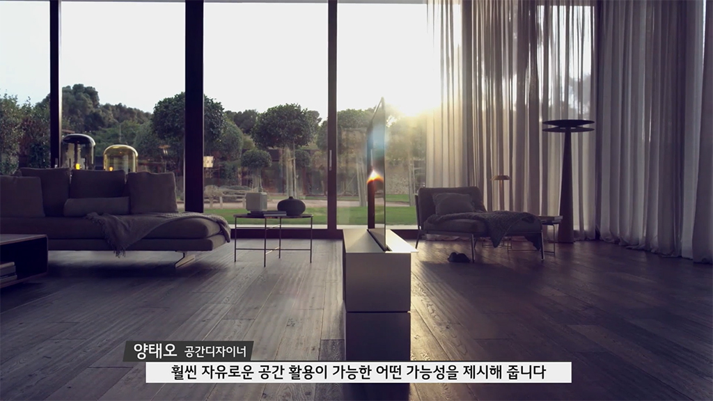 앞서 이야기했듯 기존에 TV는 거실이나 가장 큰 벽에 설치되거나 놓이는 형태였는데요. LG 시그니처 올레드 R이 등장하면서 공간에 대한 해석도 달라졌습니다. 말 그대로 TV의 새로운 패러다임을 제시했다고 할 수 있는데요.